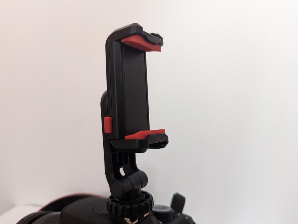 It is easy to install on the camera and holds the phone.