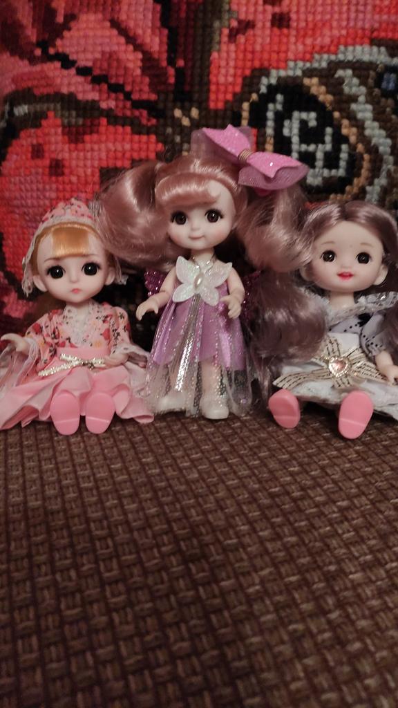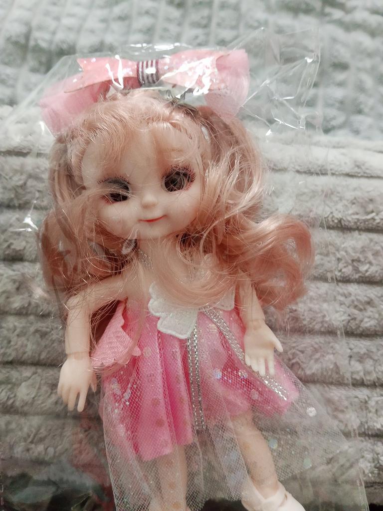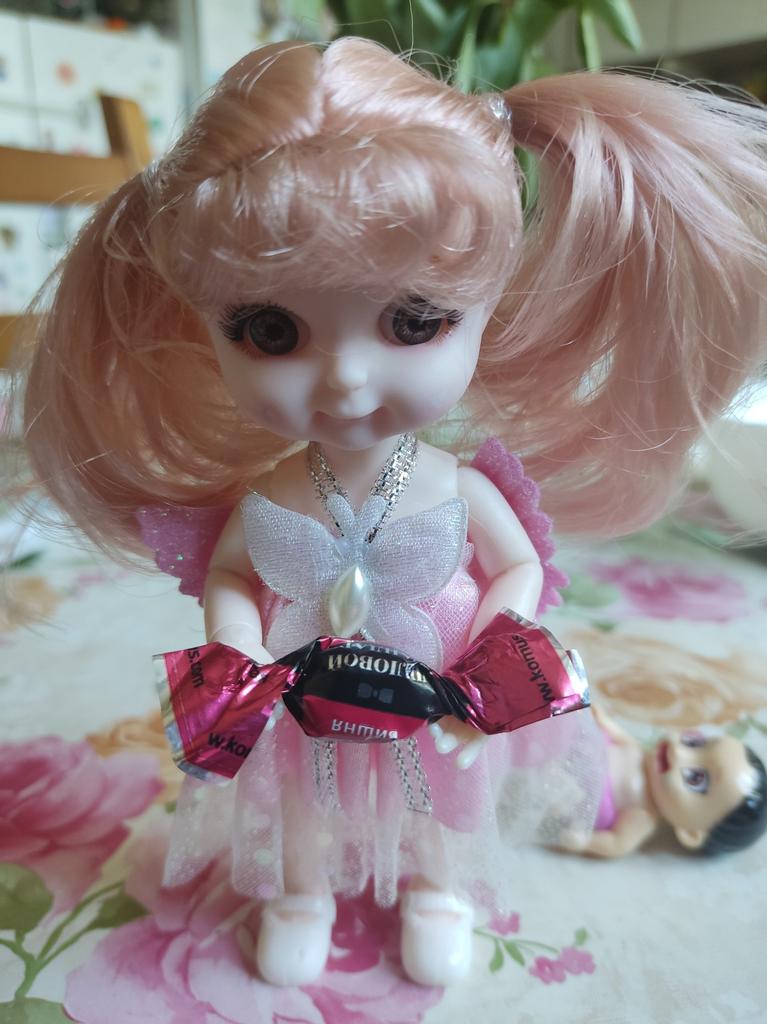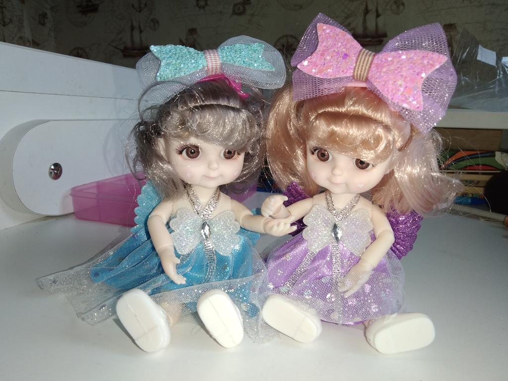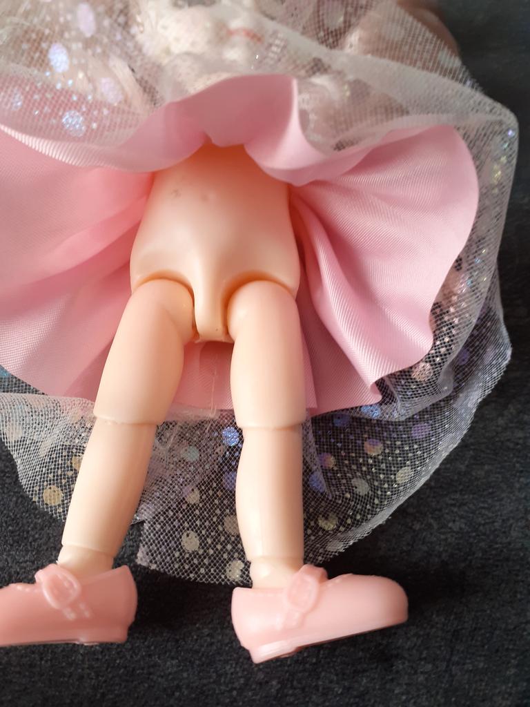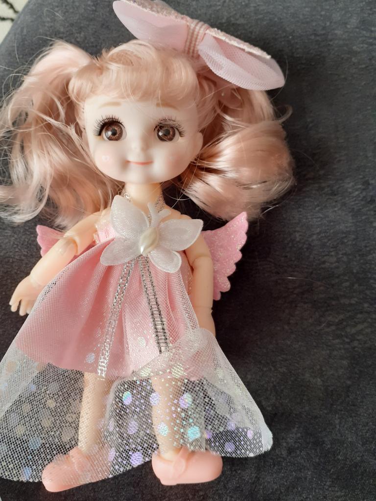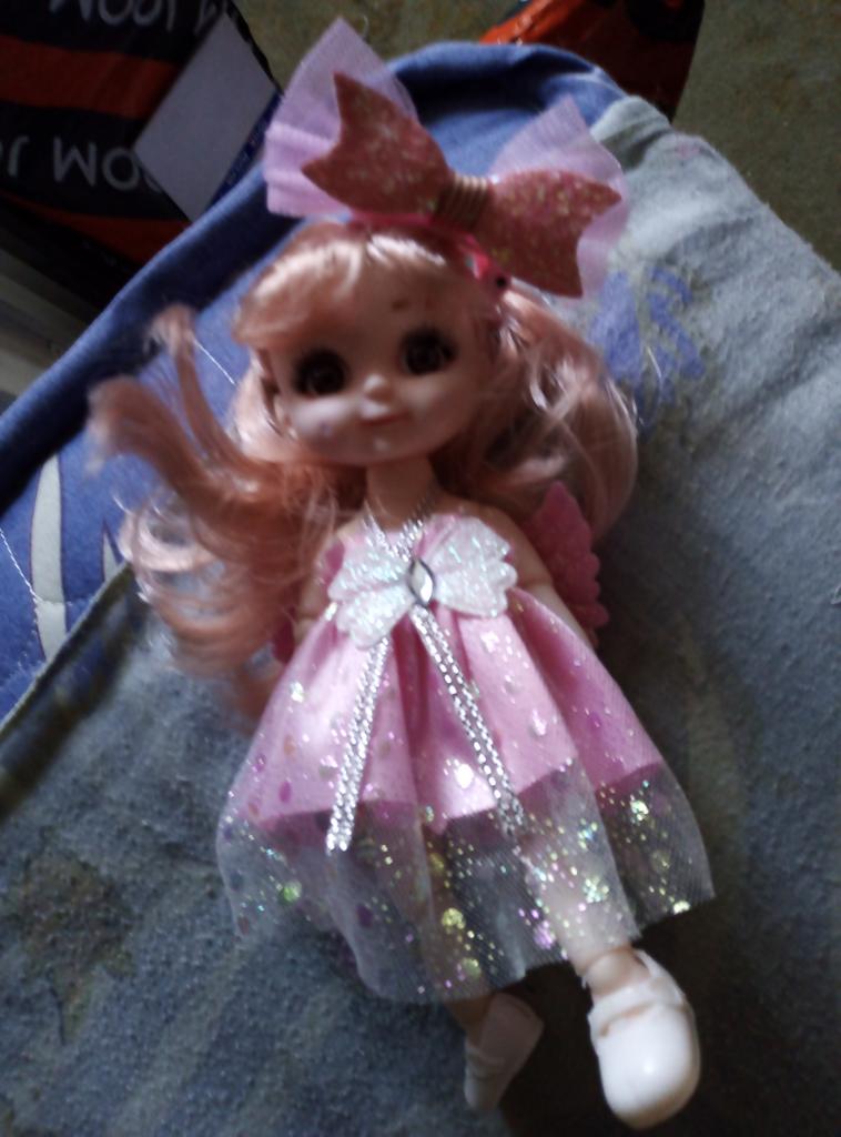 Sweet little doll! The hinges are good, the clothes too, the smell is insignificant, it fixes well in poses, stands confidently, the hair stitching is average. Includes a dress with wings, a hair clip with a bow, shoes. Definitely recommend!