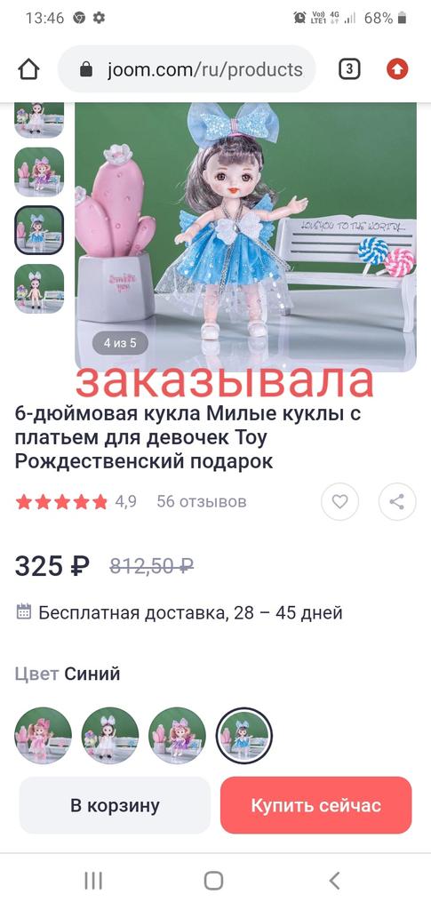 Ordered on February 07, 2026, received on March 27, 2026. I don't know, only during COVID were there such delays in ordering, "quality" of services.. The doll is beautiful, the bow is a hairpin, "joints" are working.
