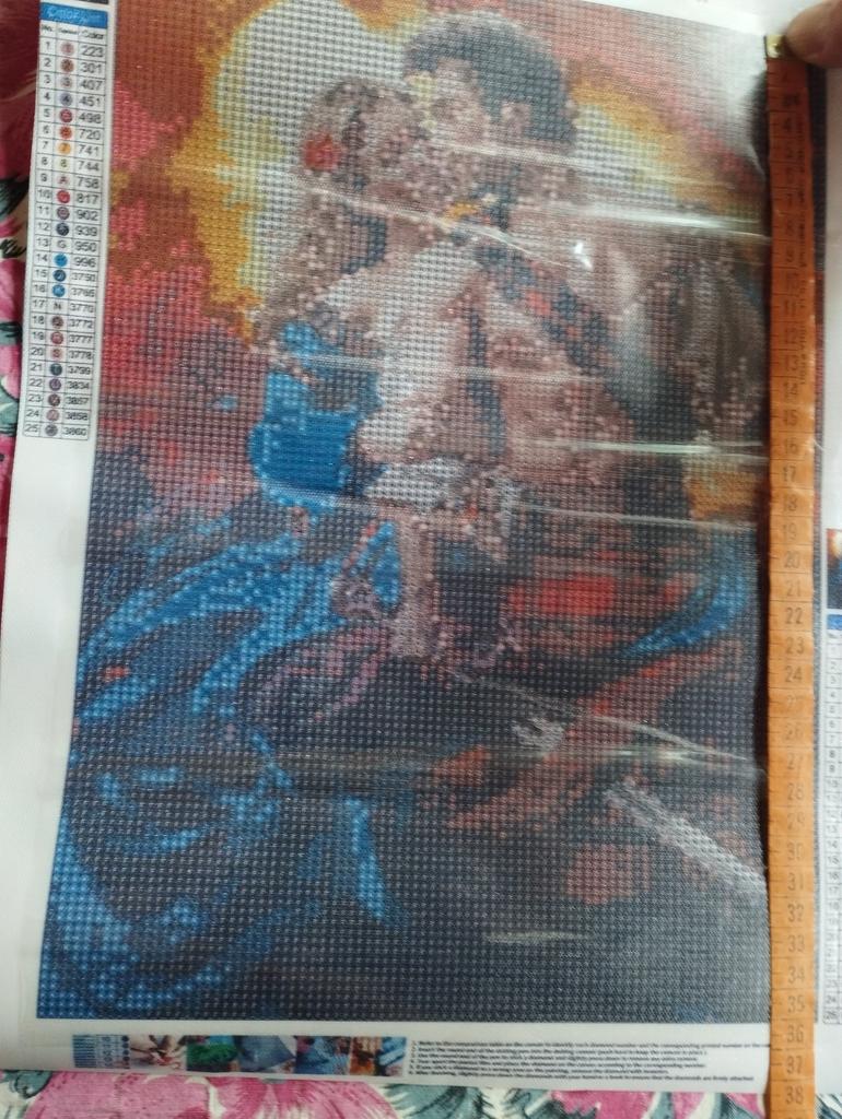 The dimensions do not correspond to the declared. 25 by 35, not 30 by 40. It is dark, not clear. I don't want to start explaining it. I was waiting for a better result.. 5 points to Jumu for delivering the order on time. I do not recommend the seller! If after laying out the result changes for the better. - then I will add to my review. I just took a look - there are holes in the picture between the rhinestones. And how will it look in the finished form? By the way, the size of 25 by 35 is much cheaper. Why write that it is 30 by 40? Why even advertise a picture in such a small format, knowing that the result will not be of high quality? I am adding to the review... I haven't seen such a low-quality scheme for a long time... The colors are dirty-dark, I don't even know how to say it. The picture itself will be pale, the face will be some kind of mass of rhinestones... In the numbering, there are two numbers 6 with different colors. I'm disappointed! And now how to return the money and time spent?