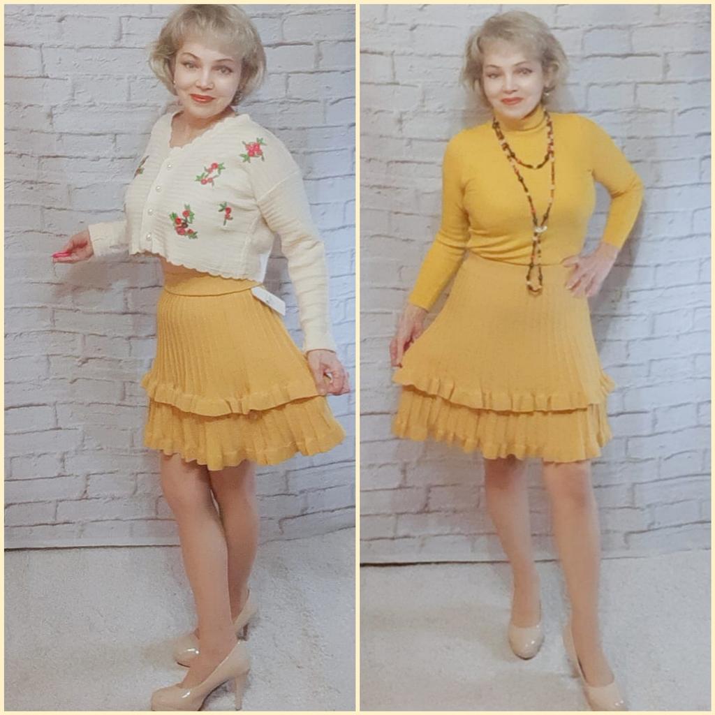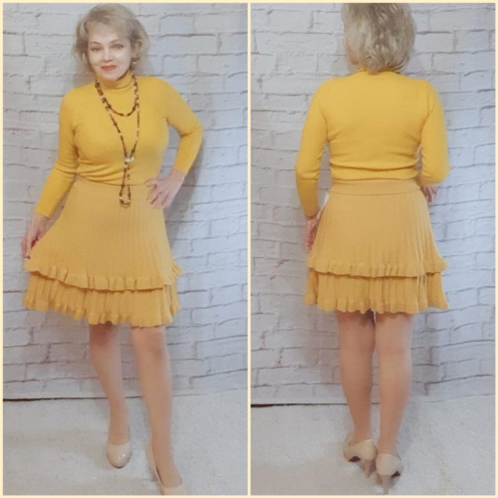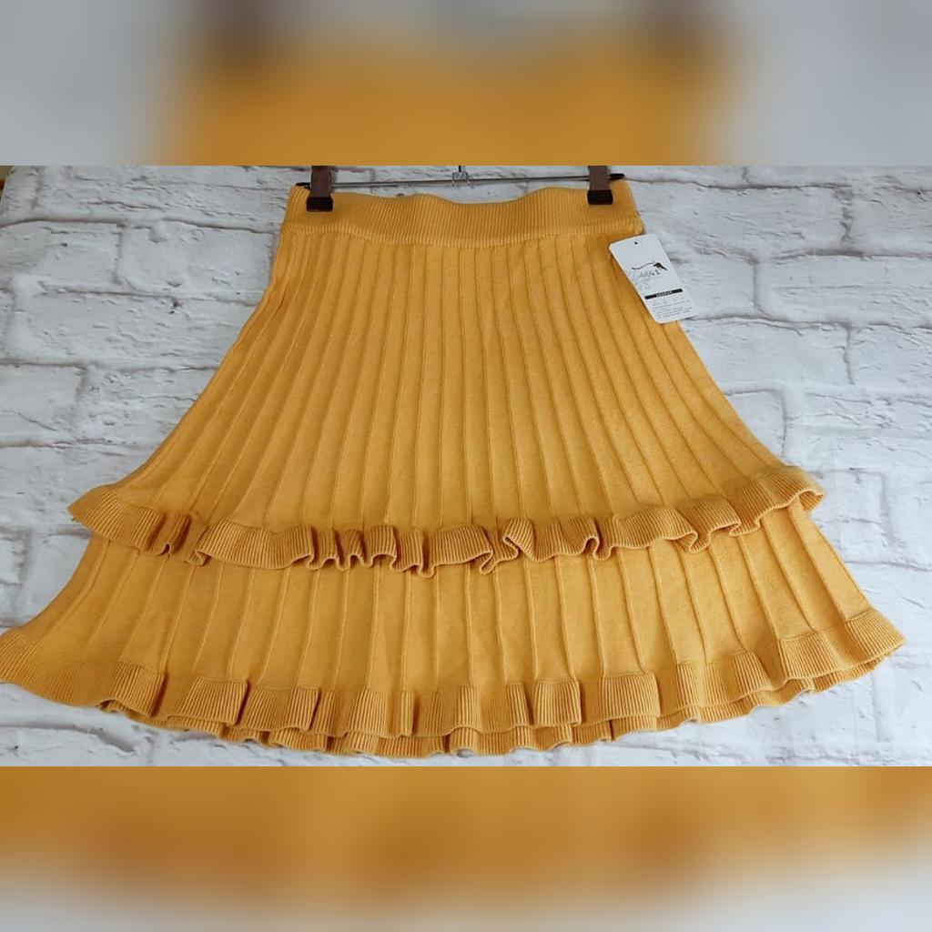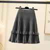 Knitted Skirt Female Autumn and Winter High Waist Pleated Skirt A-line Ruffle Pure Color Elastic Waist