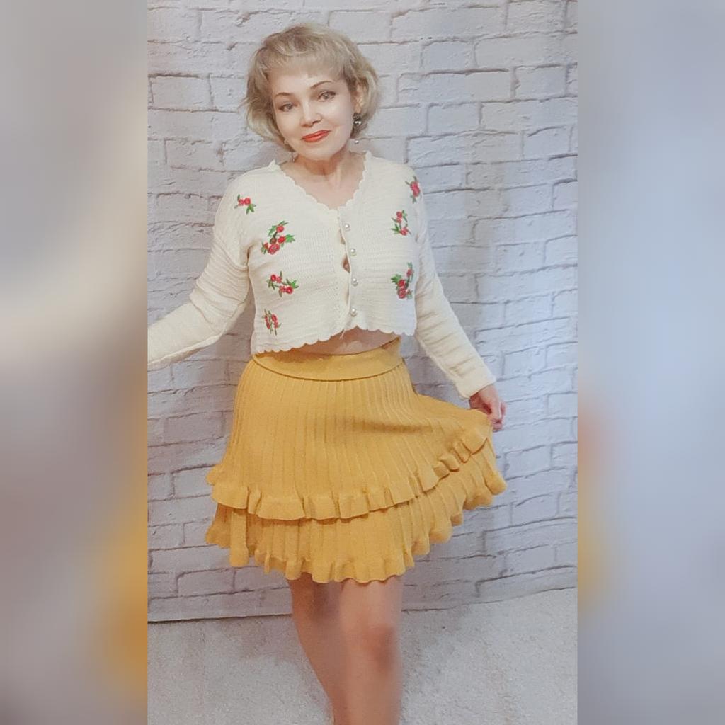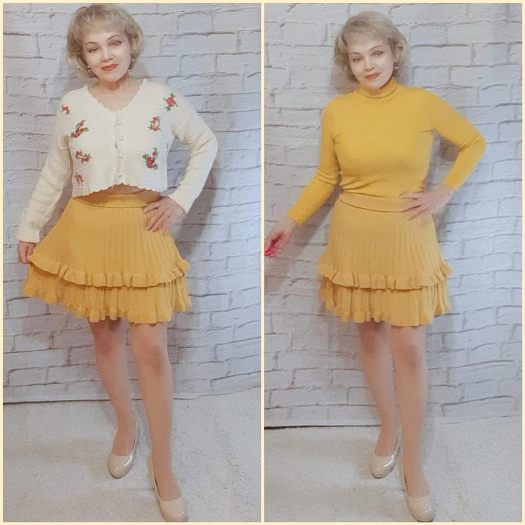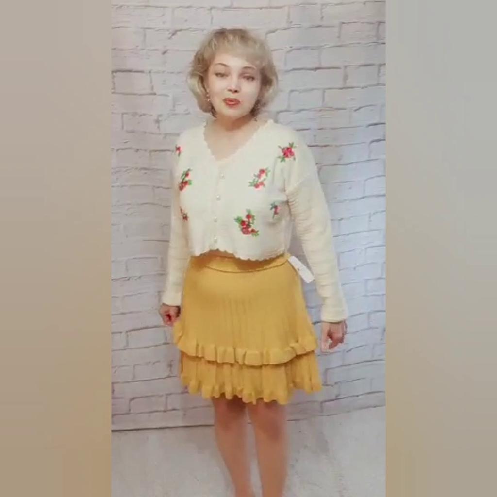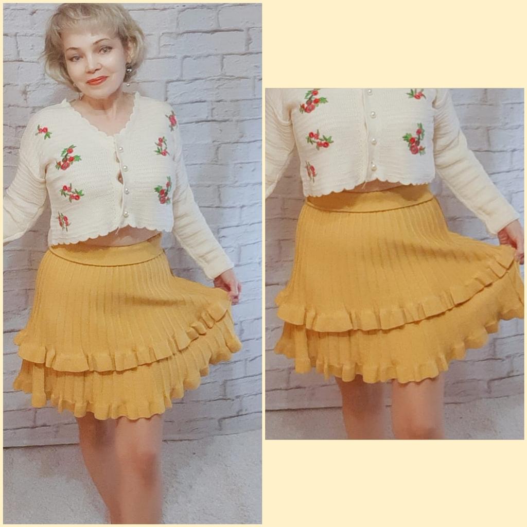 Knitted Skirt Female Autumn and Winter High Waist Pleated Skirt A-line Ruffle Pure Color Elastic Waist