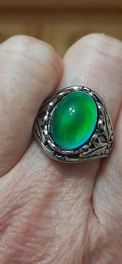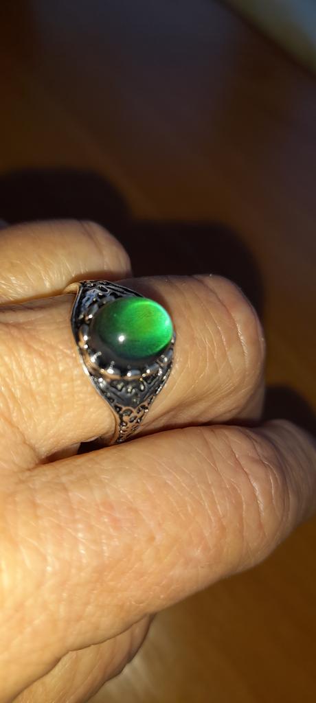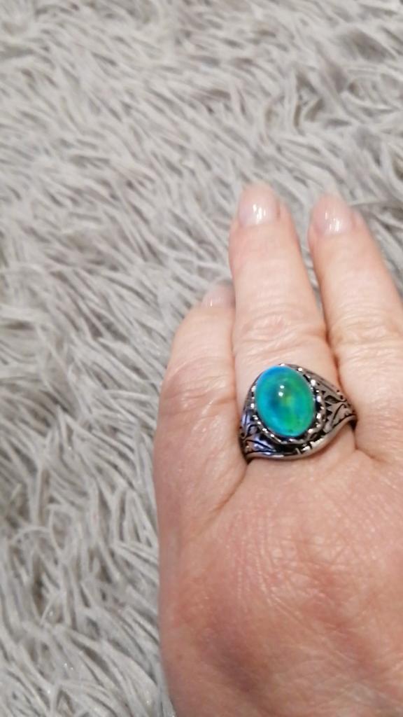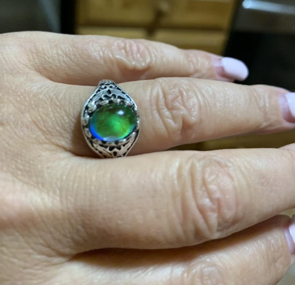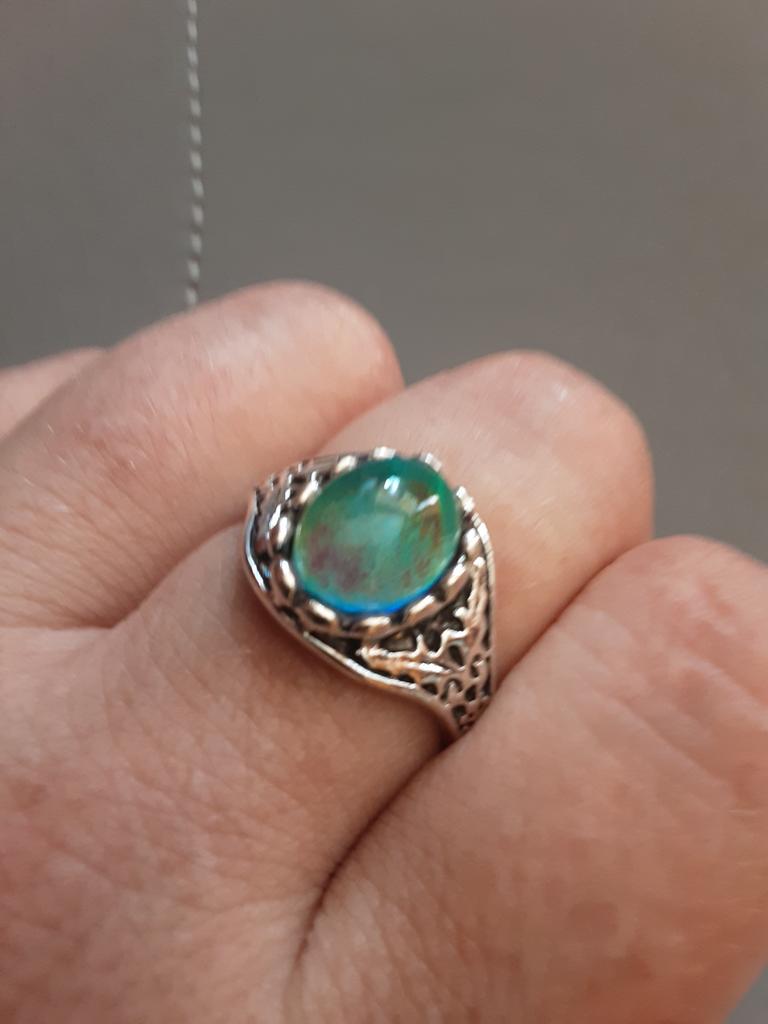 Beautiful ring, chameleon stone, color changes with temperature.