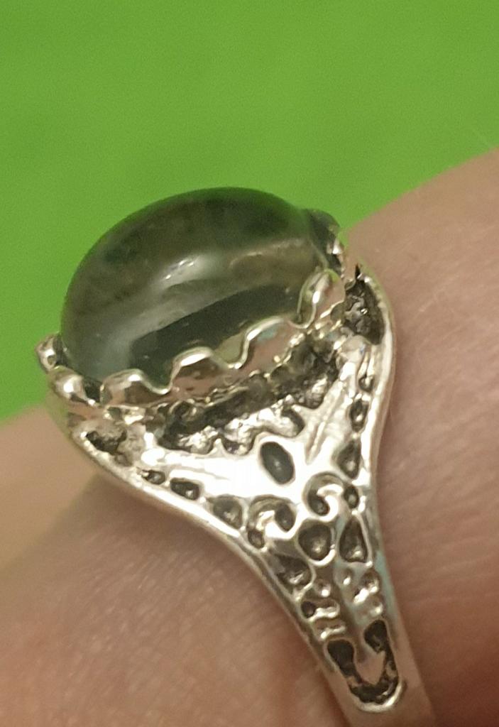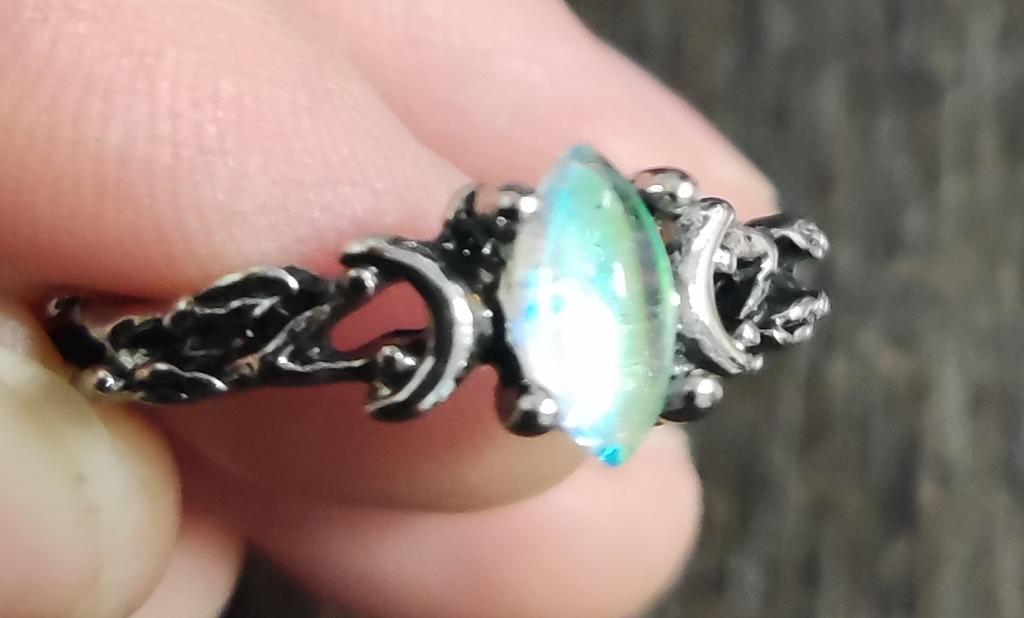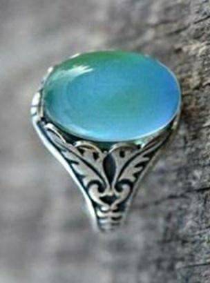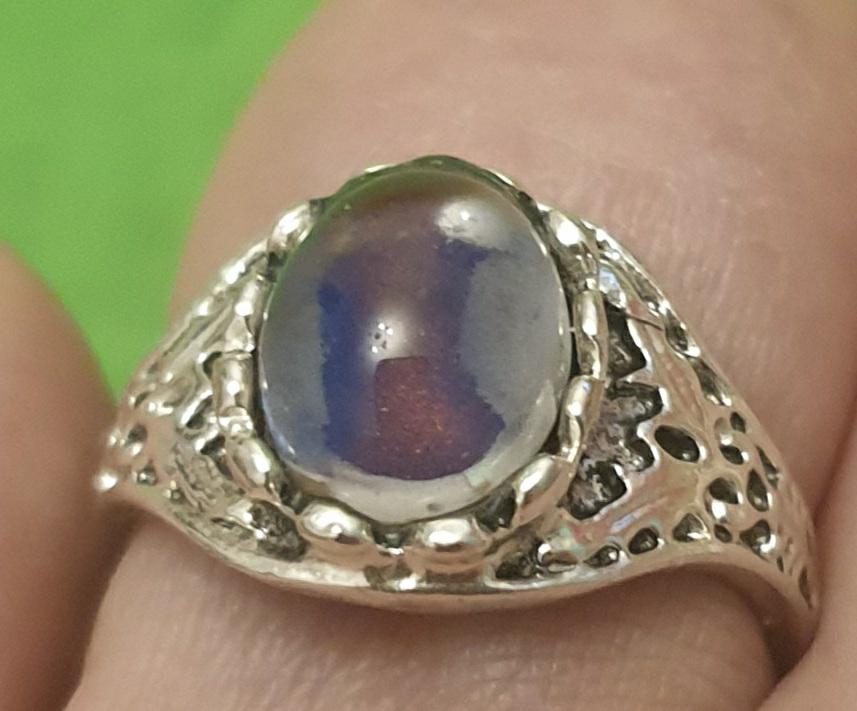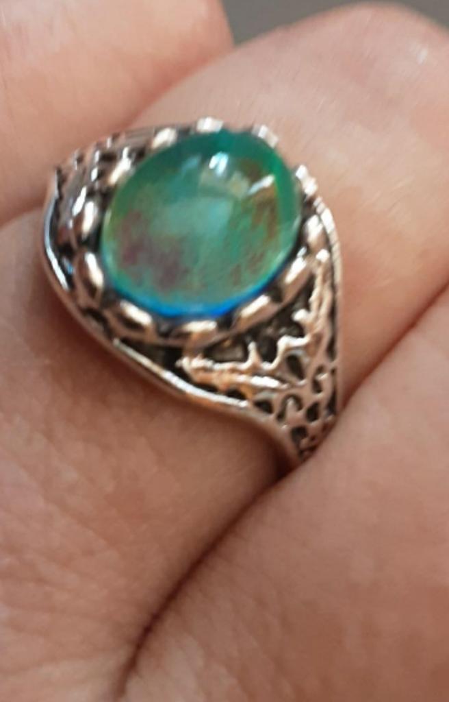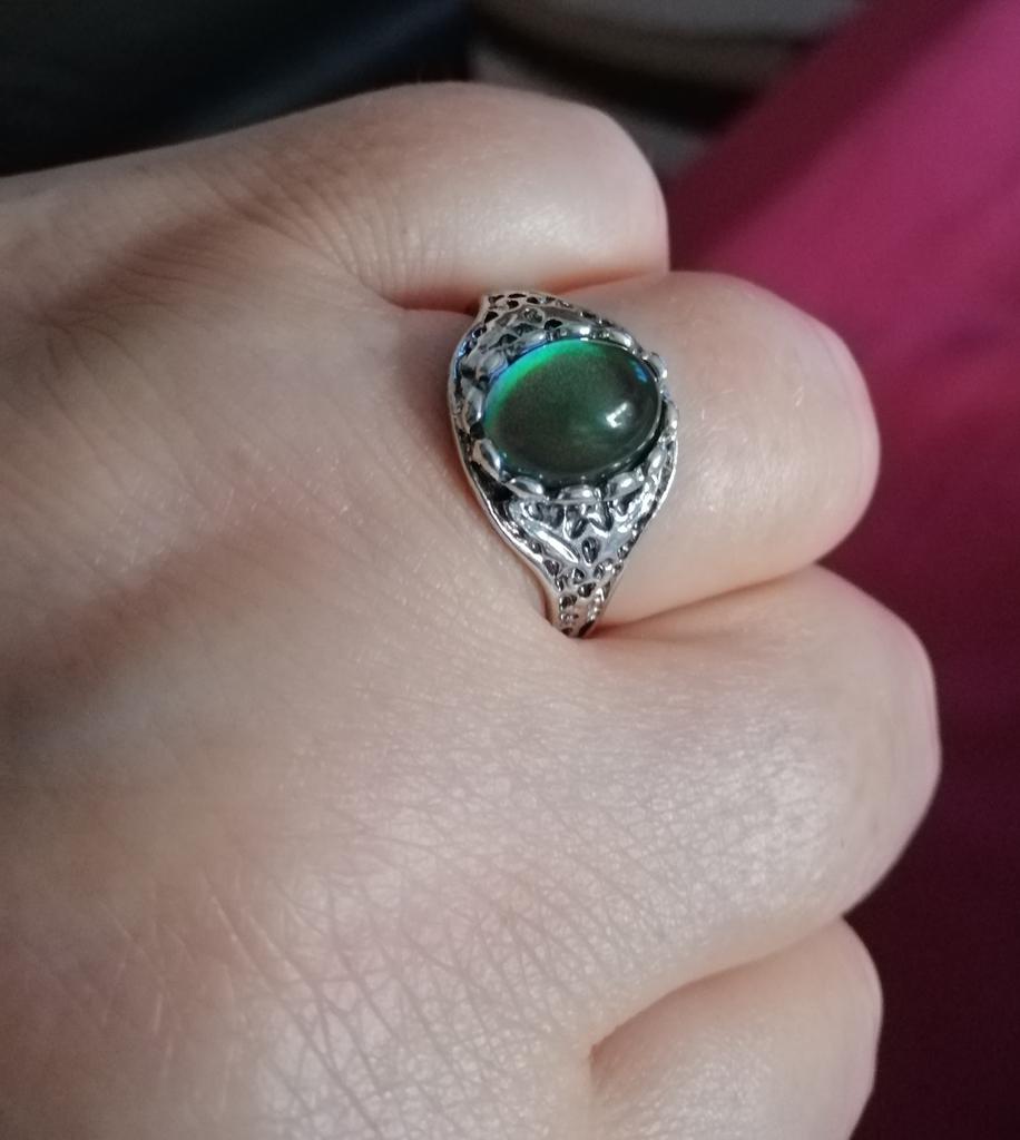 Beautiful ring, chameleon stone, color changes with temperature.