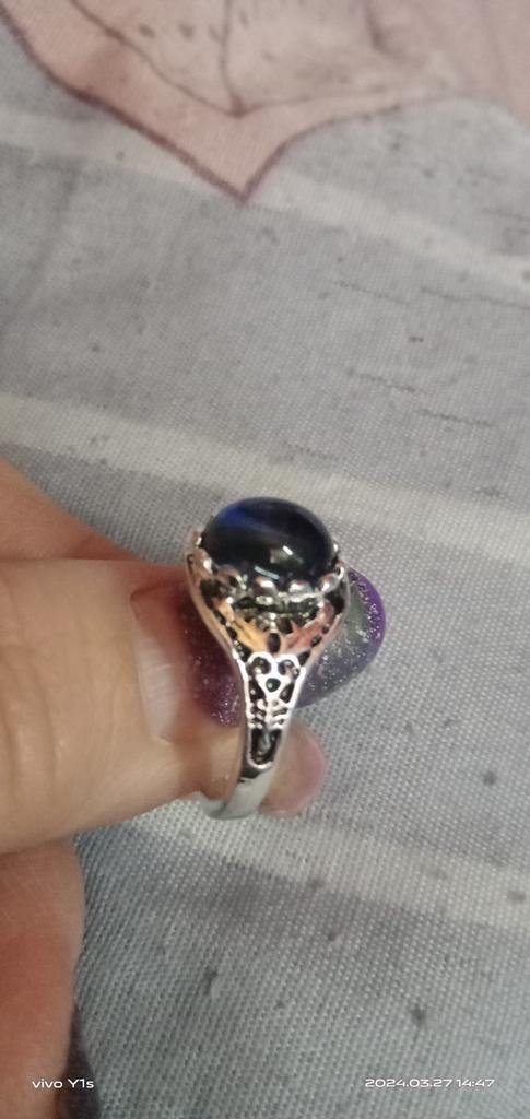 The ring is cute, the color of the stone changes: black, purple, blue, white. The ring is small, not the same as in the photo and the stone is naturally also small