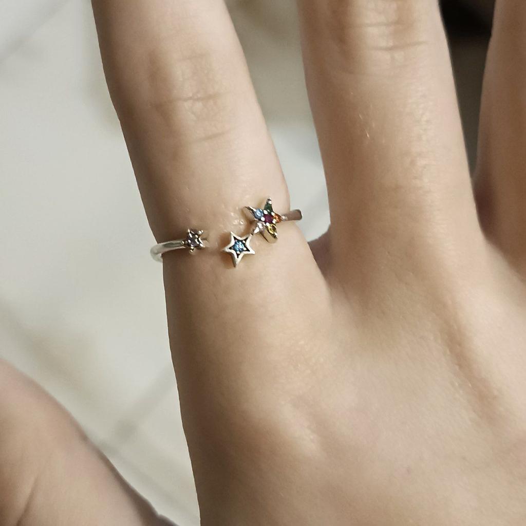 BAMOER 925 Sterling Sliver Adjustable Rainbow Colorful Star Love Heart Rose Open Rings For Women Female Original Jewelry