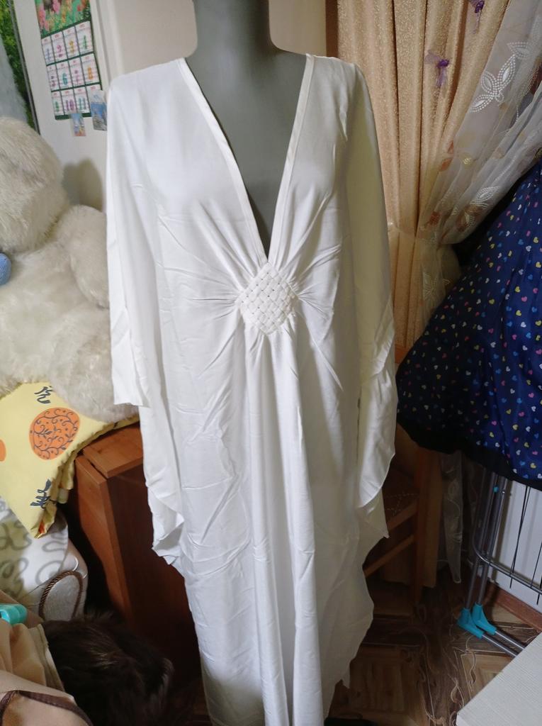 2024 Solid V-neck Batwing Sleeve Plus Size Loose Maxi Dress For Women Summer Beach Wear Kaftan Long Bathing Suit Cover Up Q1306
