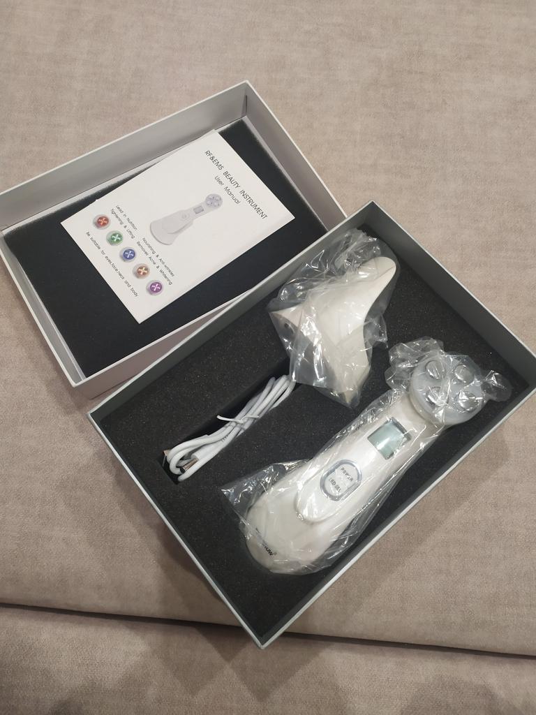 Delivery is fast. They even put a hair band as a gift. It looks and is packed well. In general - for such money it is normal. To feel myostimulation, you need to use the gel. You will not feel anything on dry skin.