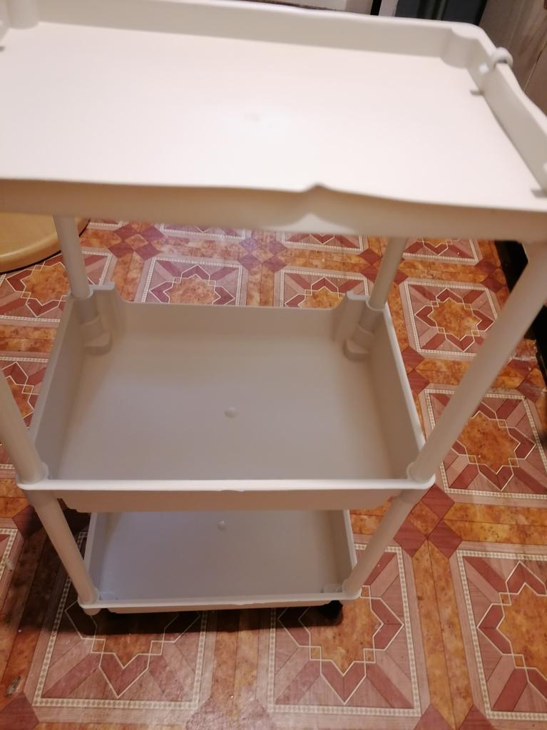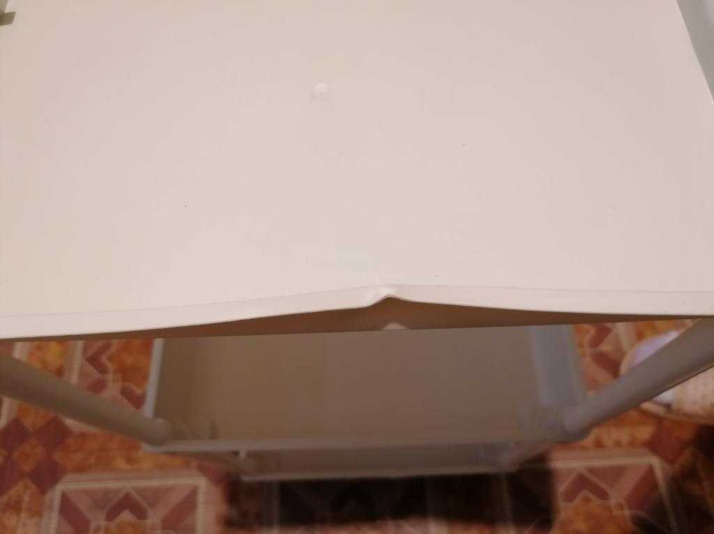 The shelf is scratched and dirty, the part of the shelf, which in the description seemed to be the shelf itself, turned out to be just an additional sheet that folds onto the shelf.