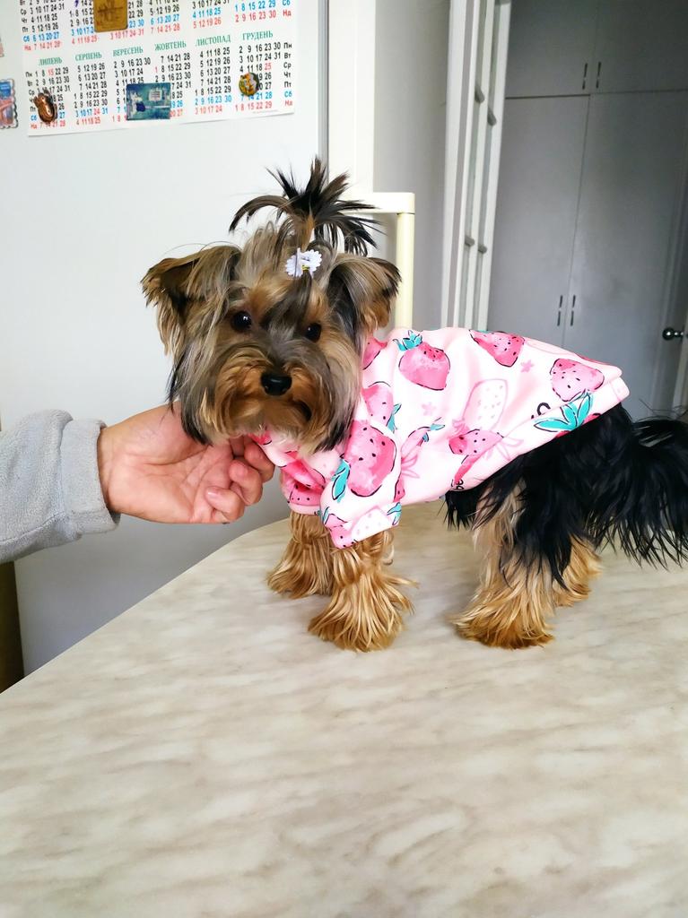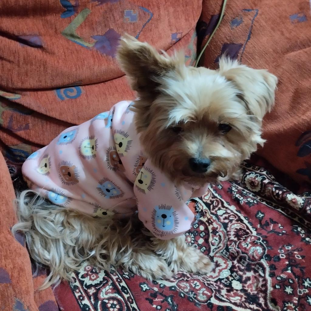 Everything is cool. I took size L for a Yorkie of 5 kg
