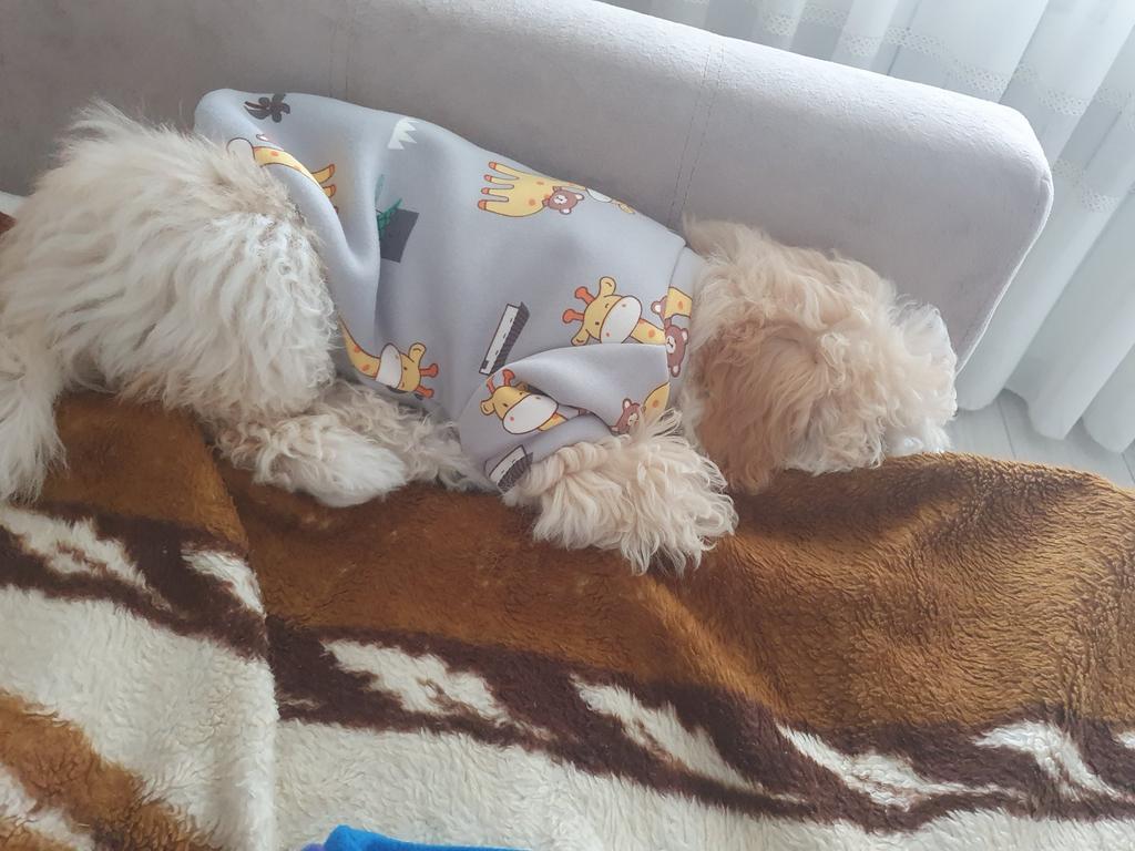 The blouse is super!! Warm, just right for early spring, I took M for a Bichon Maltese mini, 3500 kg, the size fits just right, the colors are very rich and cool, I recommend it to everyone!!!