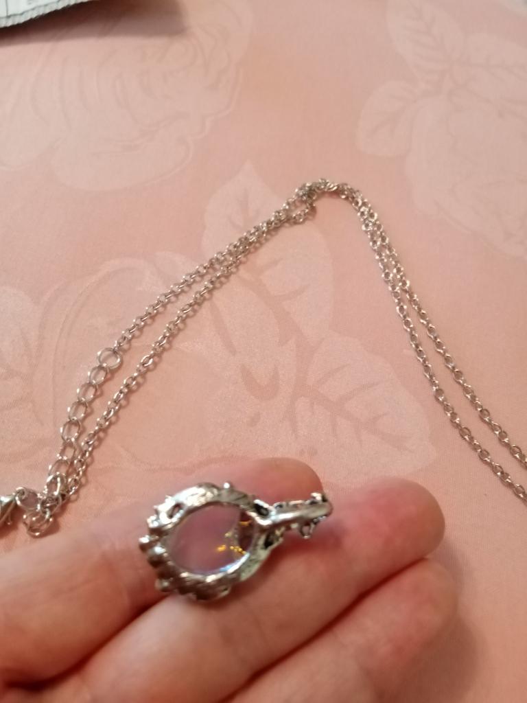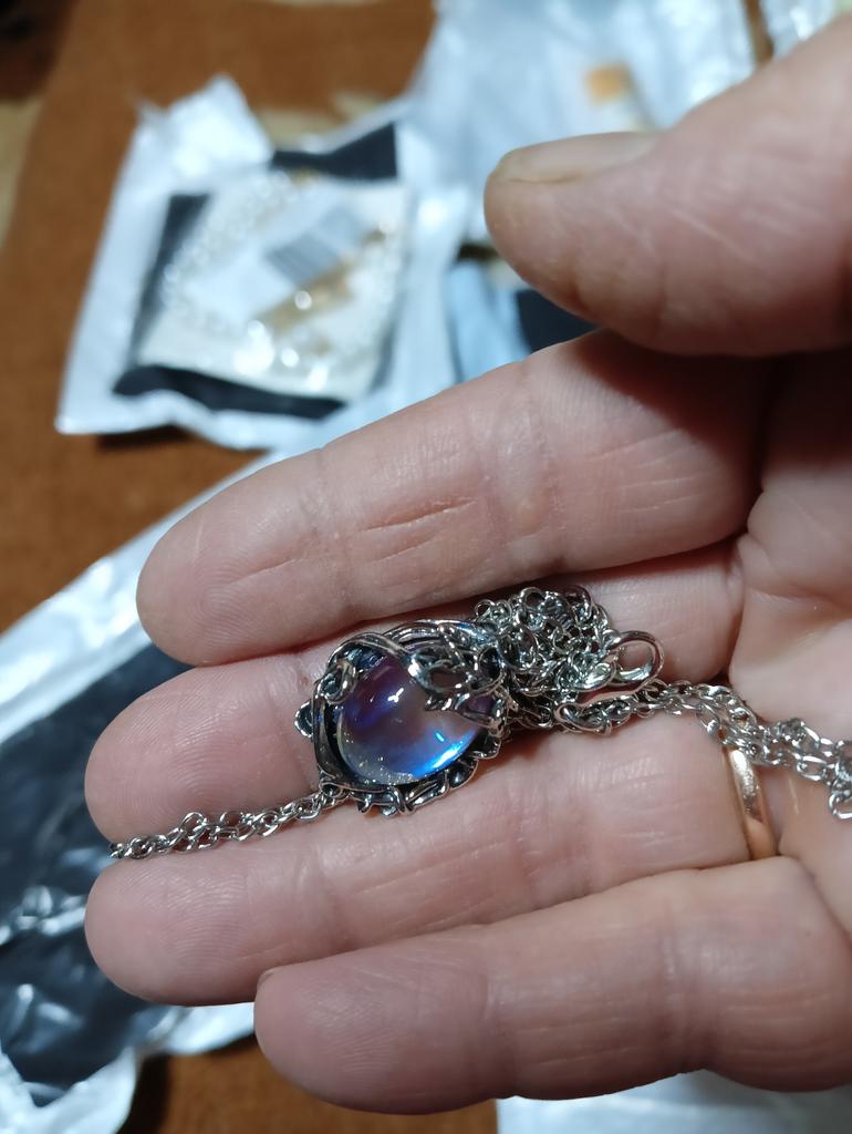 I waited a month for the order, the decoration itself is very beautiful, but the stone broke off. Fortunately the chain is intact.