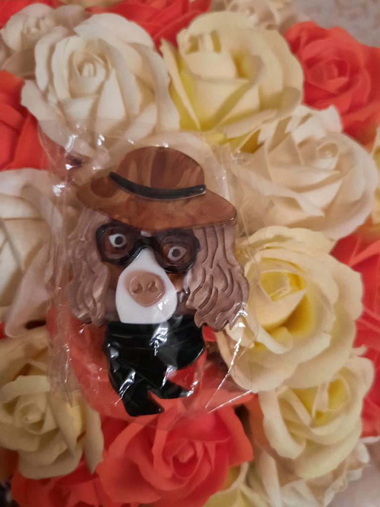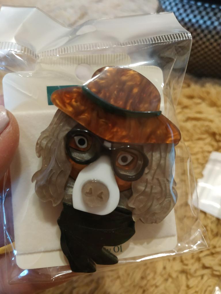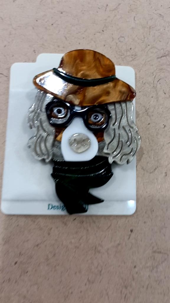Blucome Fashion Handicraft Acrylic Hat Dog Brooch for Women Men Suit Coat Hijab Pins Christmas Gift