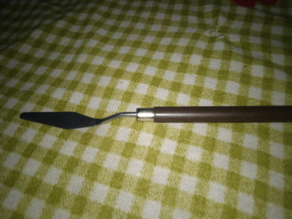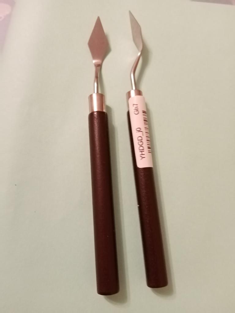 The palette knife is good and surprisingly made of normal metal, the handle is comfortable, either plastic or painted wood.