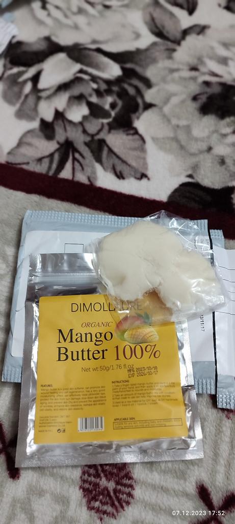 Mango butter, good quality, I buy it not for the first time. I like it very much, it nourishes and moisturizes the skin well. Thank you!!
