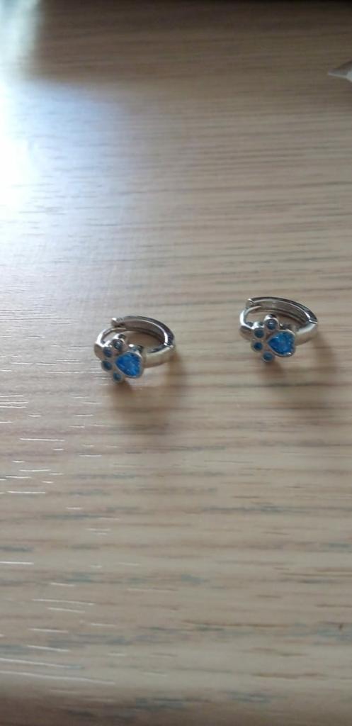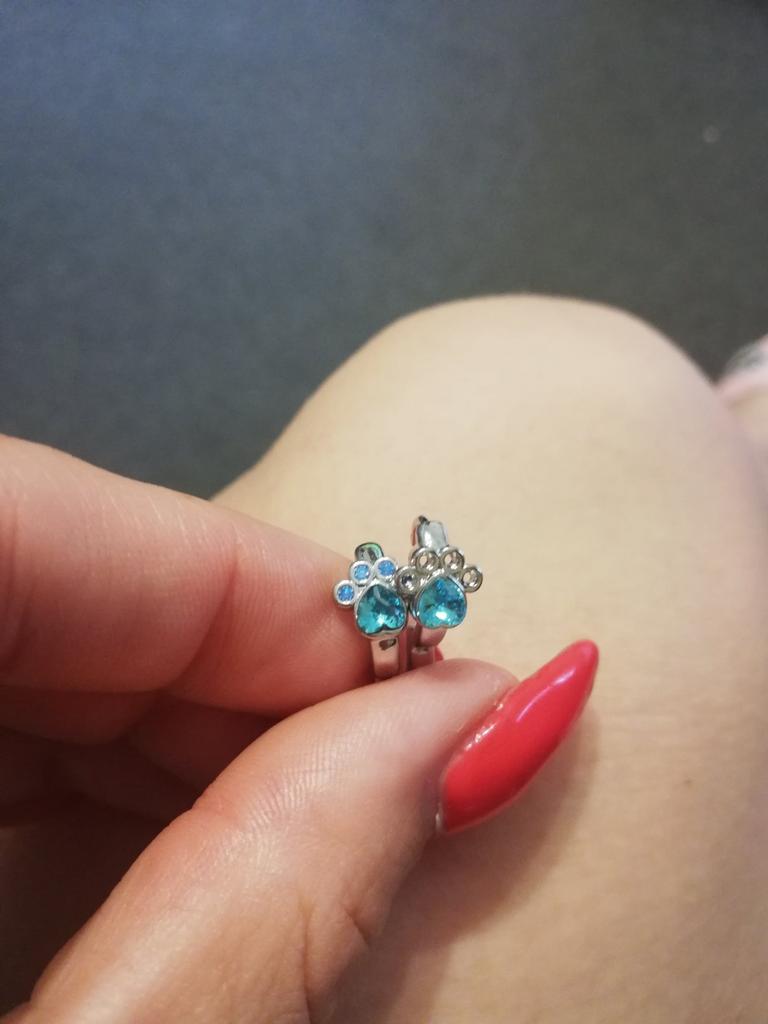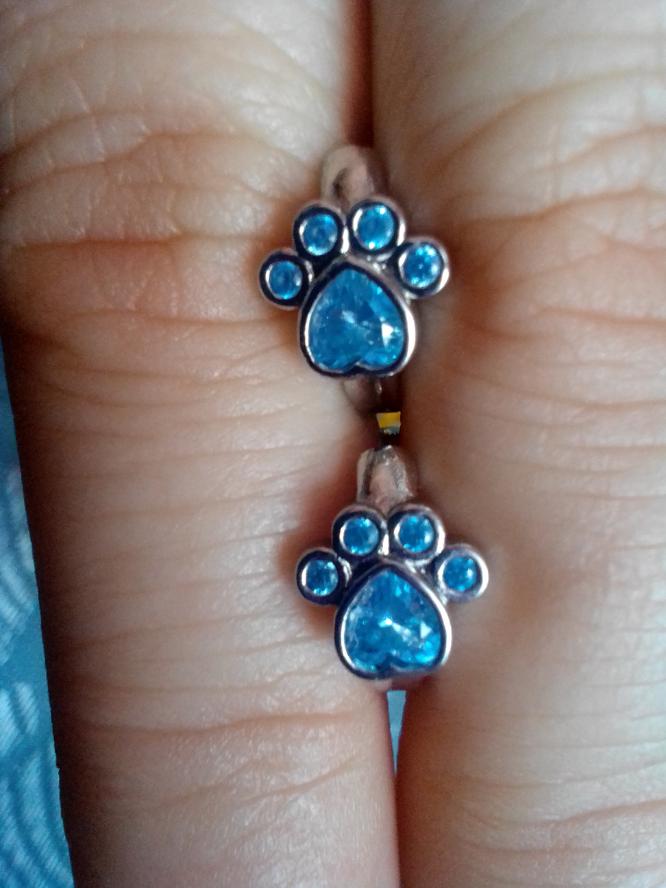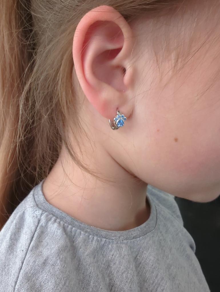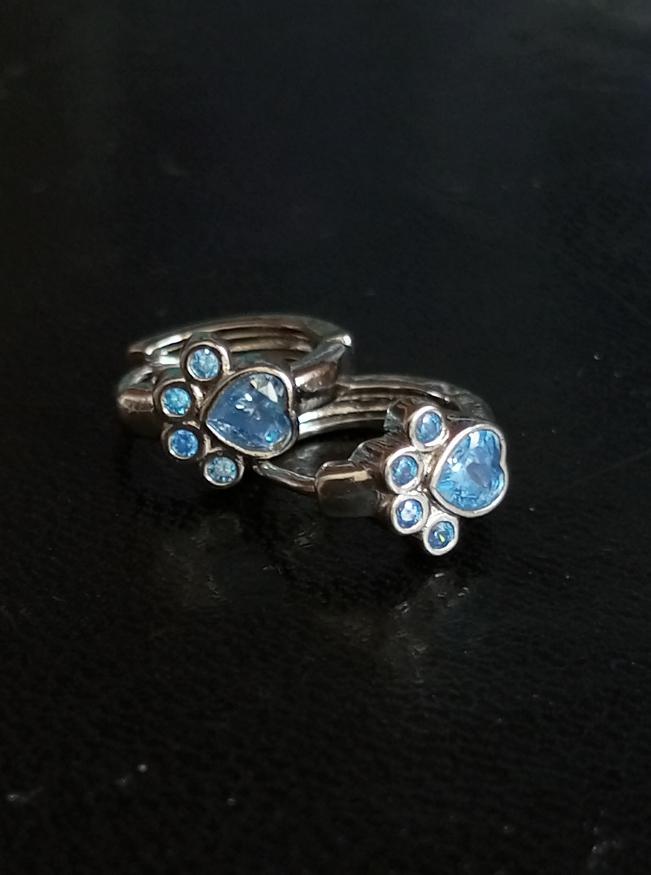 Cute Cat Paw Hoop Earrings Blue Cubic Zircon Casual Earrings For Girls