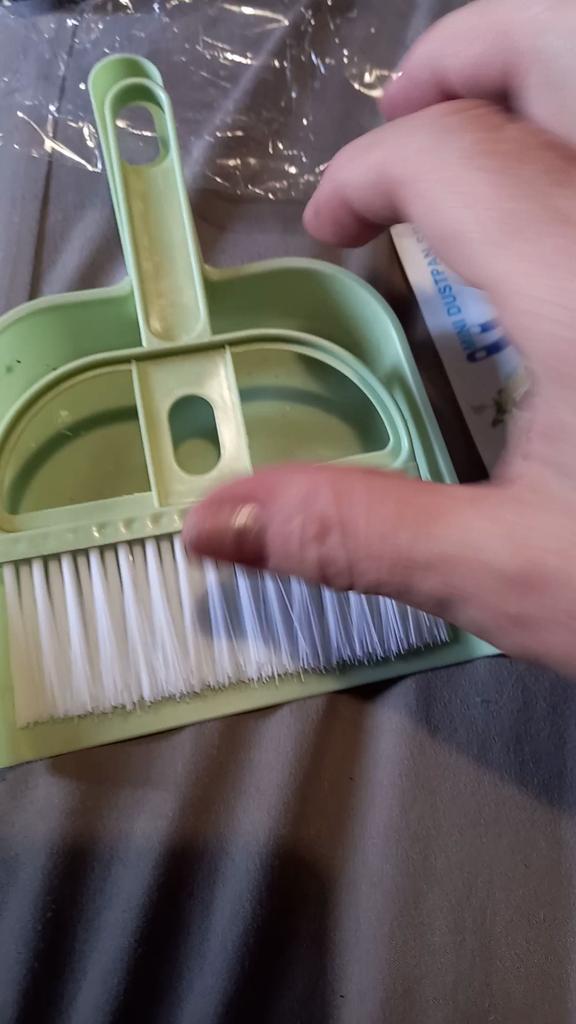 I've been wanting a little dustpan and broom like this for a long time. Packed perfectly so that it does not break on the road. The bristles are plastic, hard, and sweep well. It would be a shame if it breaks quickly.