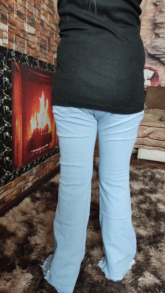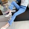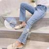 Denim Pants for Teenage Girls Jeans Spring Autumn Fashion Casual Loose Blue Bow Kids Leg Pearl Wide Pants Children Trousers