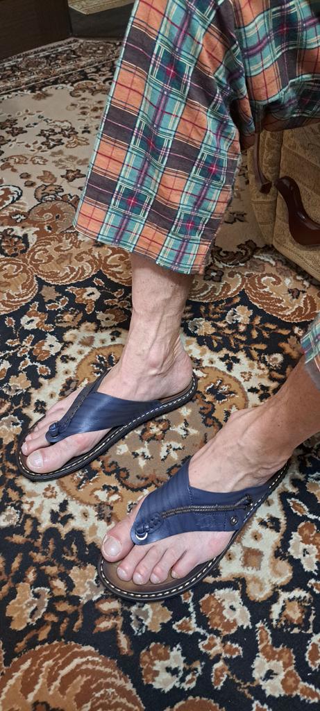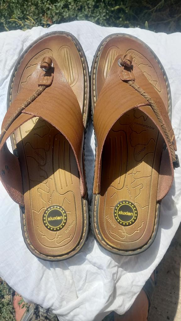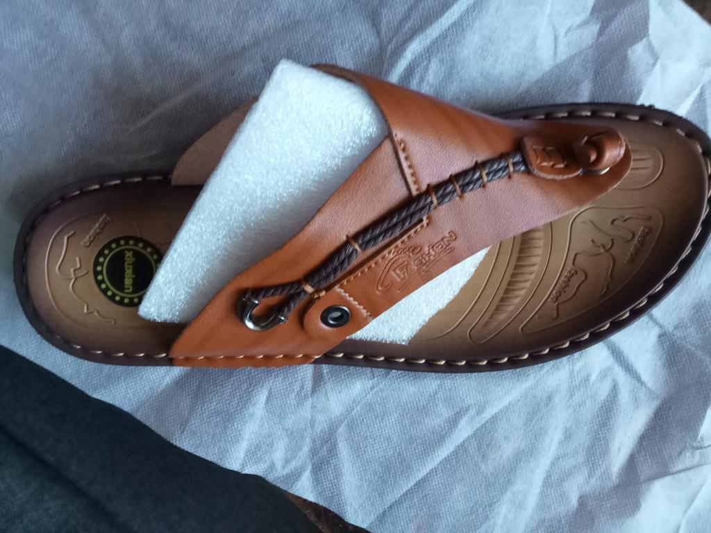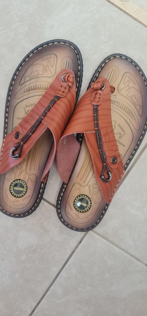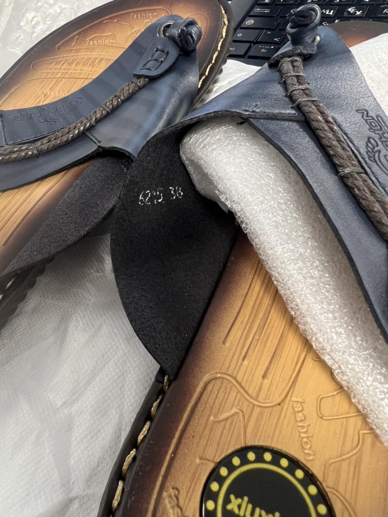 WEH Handmade Leather Slippers Summer Fashion Men Flip Flops Outdoor Slippers Breathable Comfortable Men Flip-Flops Big Size 47