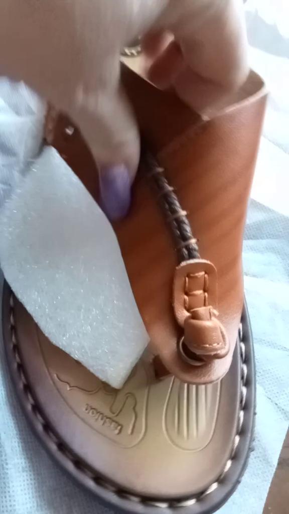 Very strong glue smell. And I doubt that the leather is genuine, just a good leather substitute.
