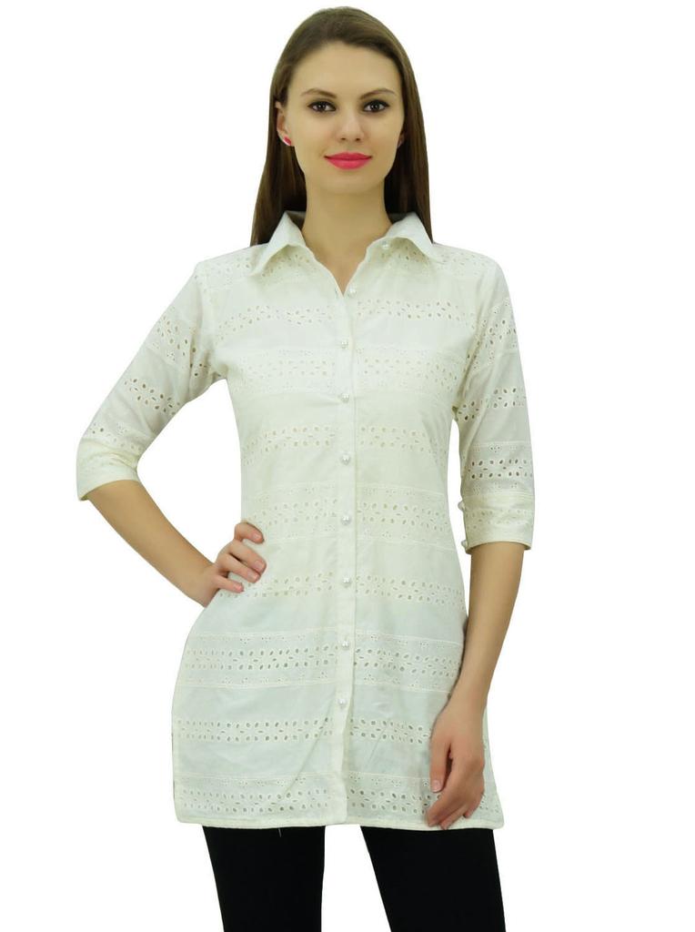 Bimba latest collection of tunic top includes this adorable cut work short kurti. Made from cotton fabric with front opening. You can avail this beautiful Bimba made piece of work at a very reasonable range. Therefore grab one without any delay.