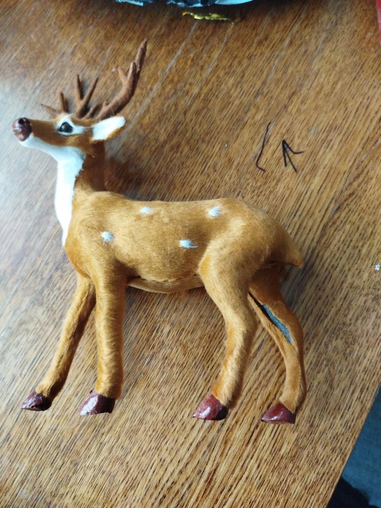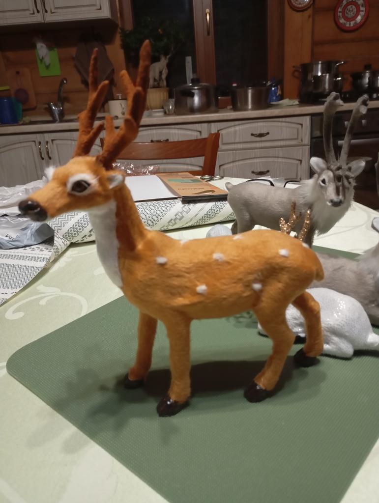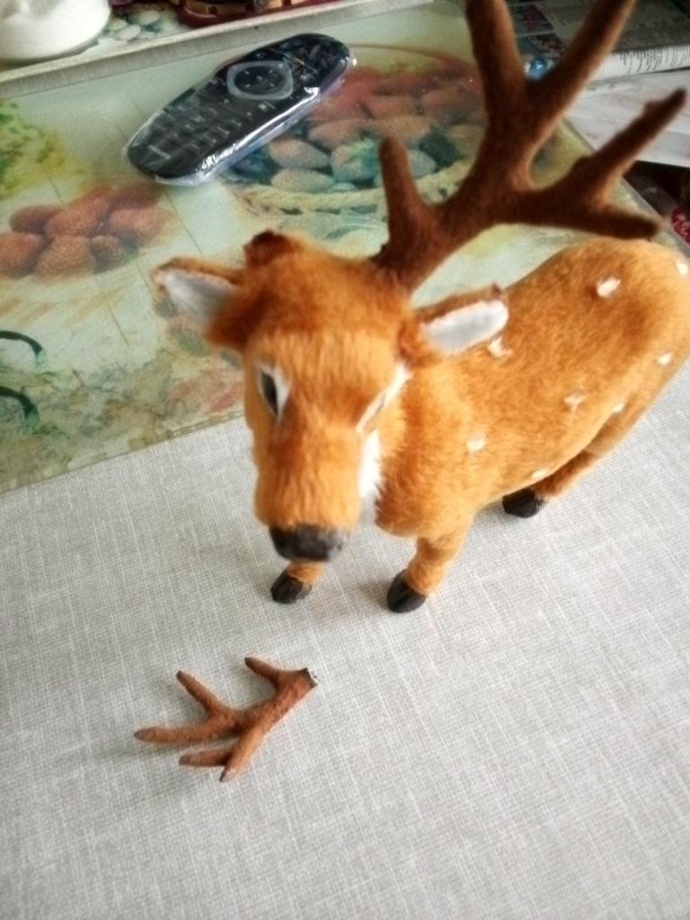 The item arrived damaged, it was poorly packaged. The reindeer's antlers are broken!!!! Such things need to be packaged in boxes!!! It's a real shame! The reindeer itself is very beautiful!