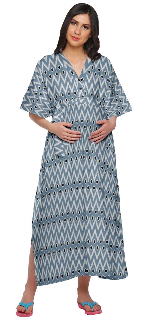 * Moomaya Introduces A New Range Of Maternity Kaftan. Perfect For Nursing Mothers And Pregnant Women. All The Kaftans Have Deep Necks (11-12 Inches), So It Will Fit All Head Sizes. You Can Wear It While You Are Pregnant Or After The Baby Comes. Flared Kimono Sleeves With Front And One Side Shoulder Open Placket For Easy Nursing. This Kaftan Comes With A Belt That You Can Tie Just Under The Bust As Per Your Suitability. It'S A Perfect Buy For 'To Be Moms' And 'Nursing Mothers.