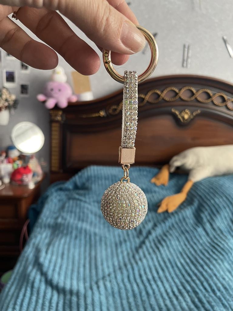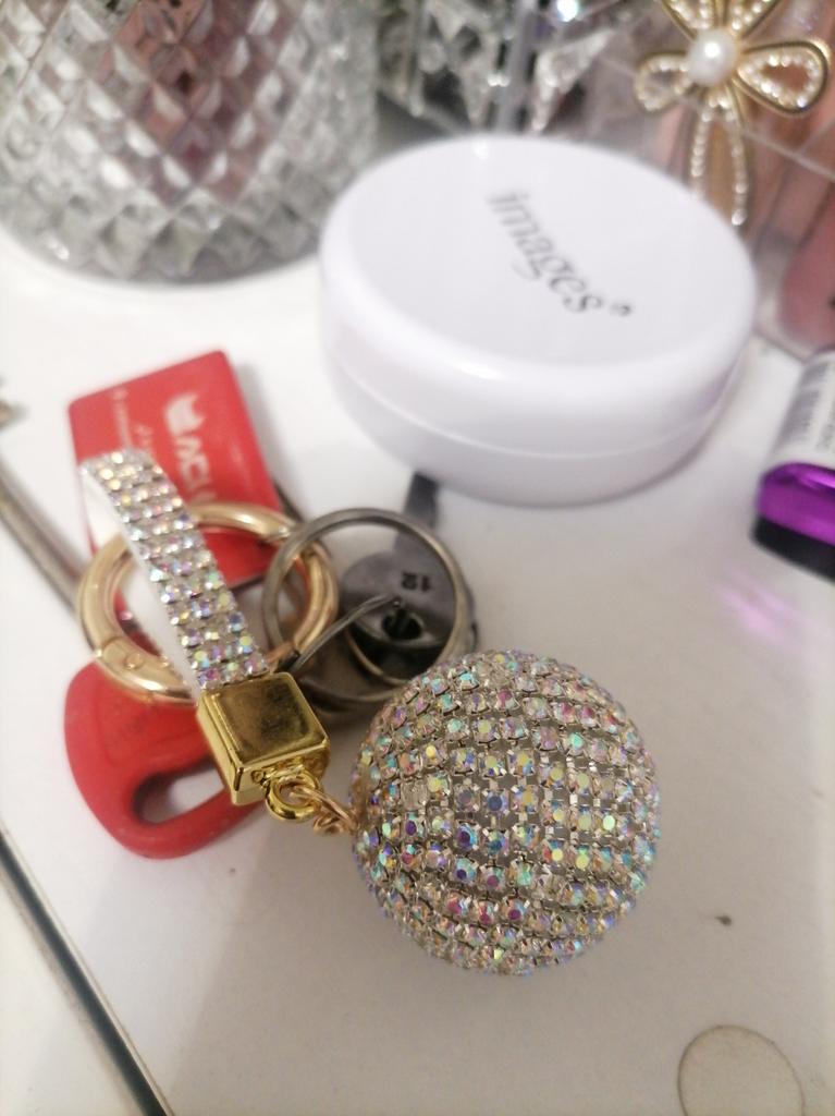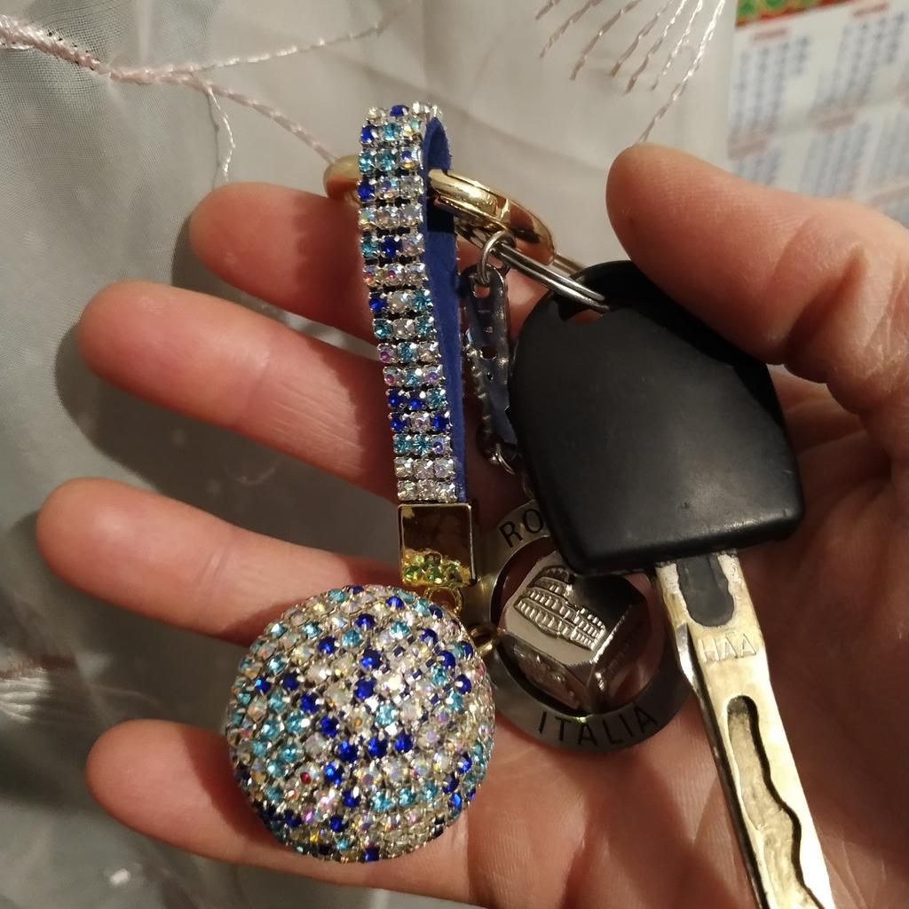 Cool keychain! A bit big, but I quickly find my car keys in my bag. Almost all the stones are in place after 3 months of use.
