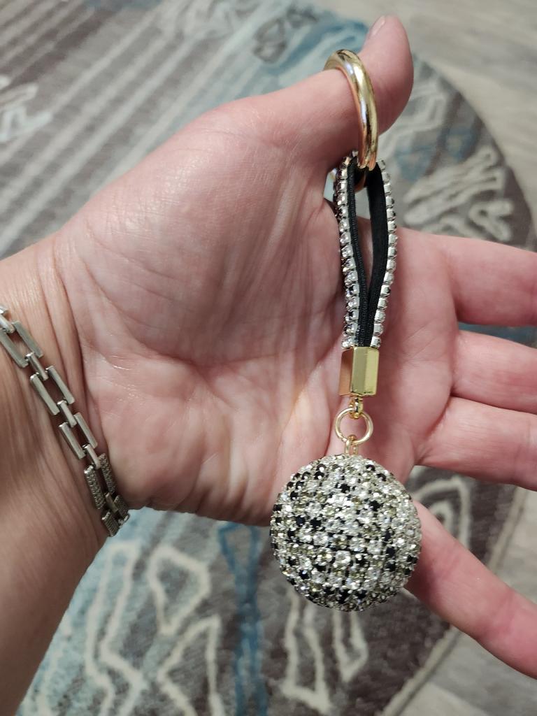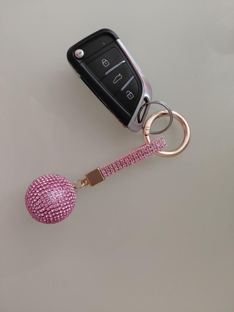 Fancy Fantasy New Strass Rhinestone High Quality Leather Strap Crystal Ball Car Keychain Charm Pendant Key Ring For Women Girl