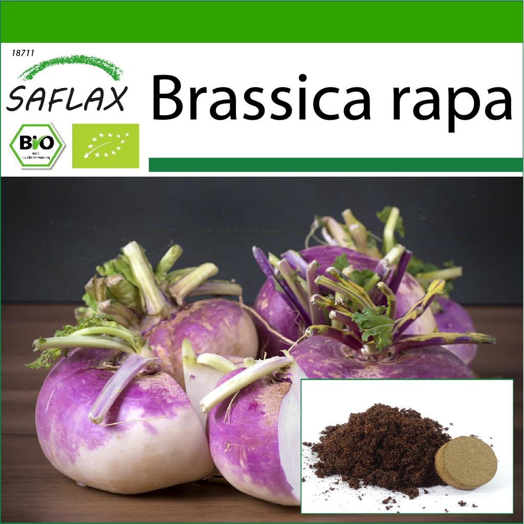 Milan Purple is a cabbage turnip variety with flat, purple-coloured roots. Its cultivation is easy and it can grow quite big without getting woody. The very aromatic, sweetish and mild roots can be eaten fresh or cooked like potatoes. The green parts of the plant are nutritious and edible as well. Turnip has a light sweetish nutty taste. This fine aroma stems from the sulphur and mustard seed essences in the tuber.