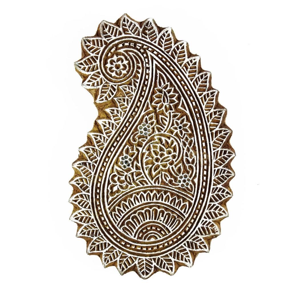 Brown Hand Carved Paisley Stamp Printing Block Wooden Textile Stamp Block