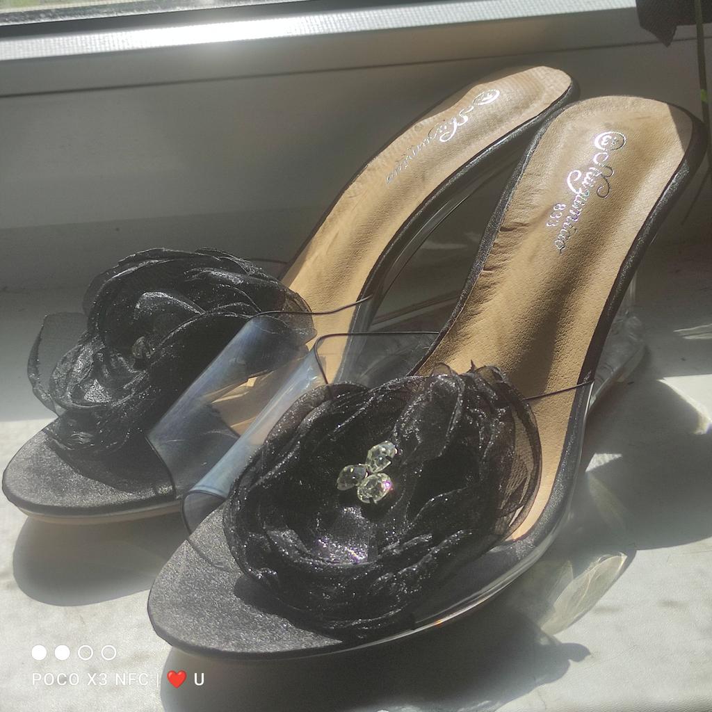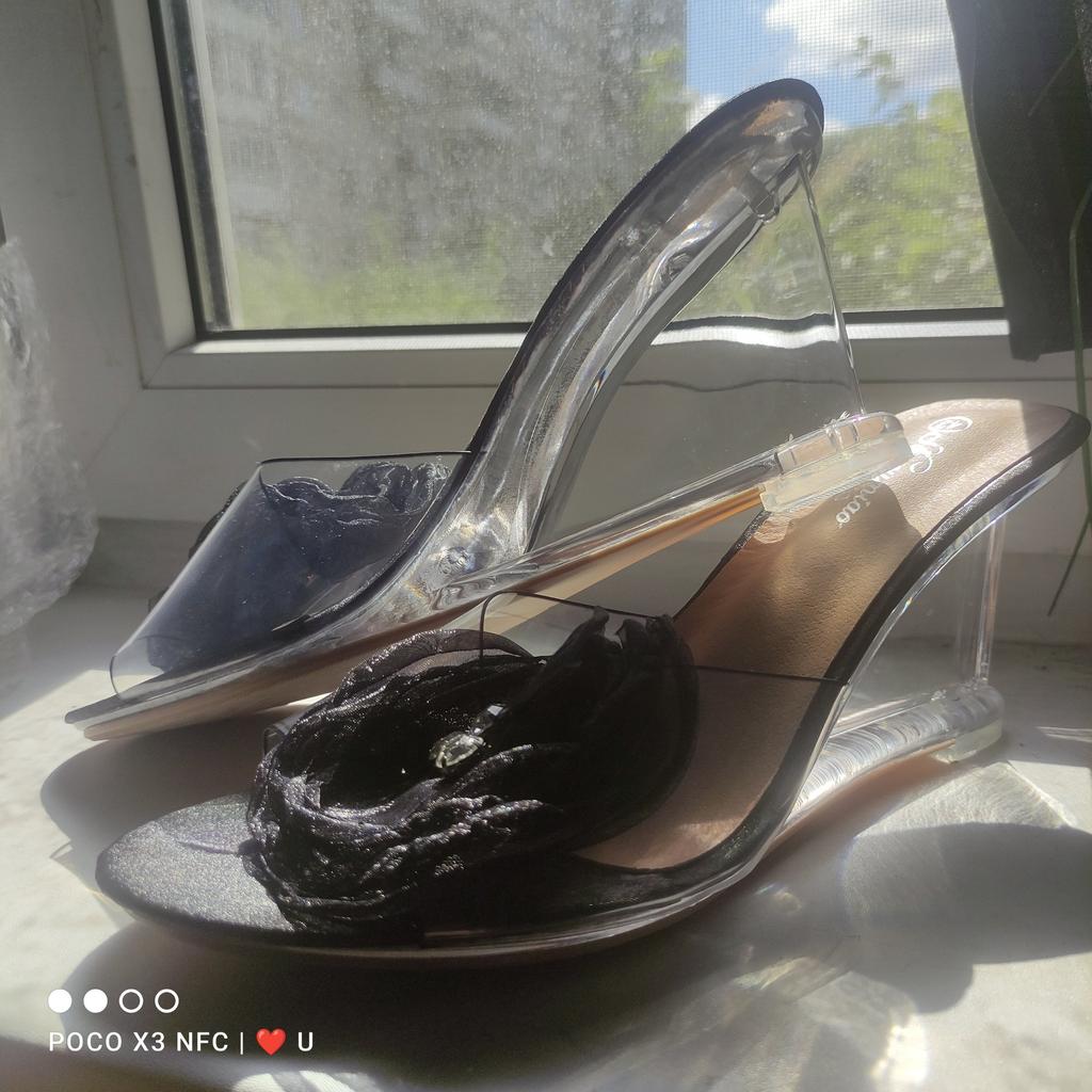 Women Black Flower Crystal Wedge Slippers Sexy Crystal Transparent High Heel Flower Slope Sandals LFD