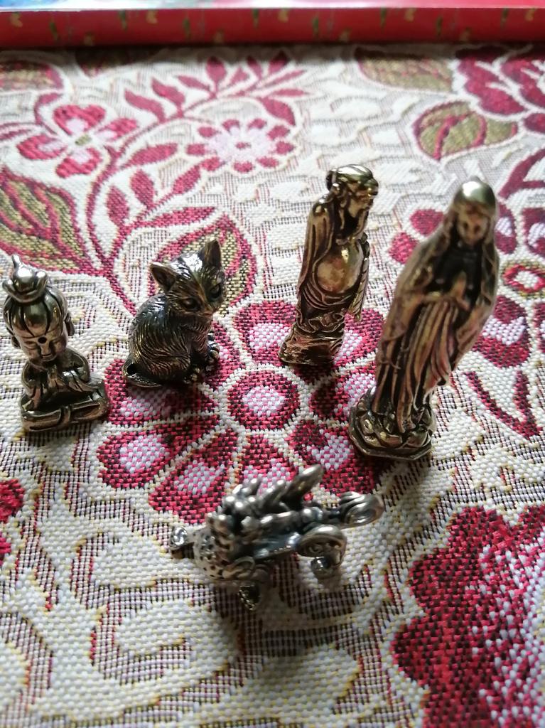 Vintage Blessed Virgin Mary Figurines Key Chains Pendants Brass Holy Mother Religion Faith Buddha