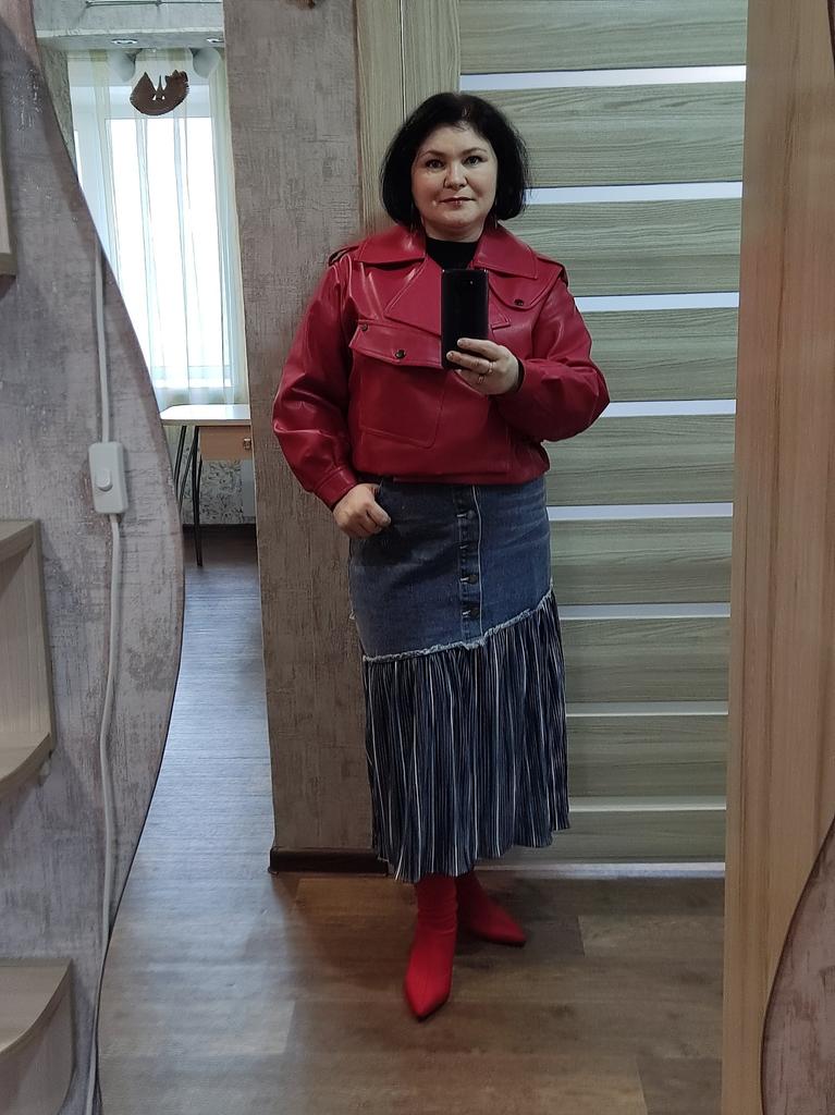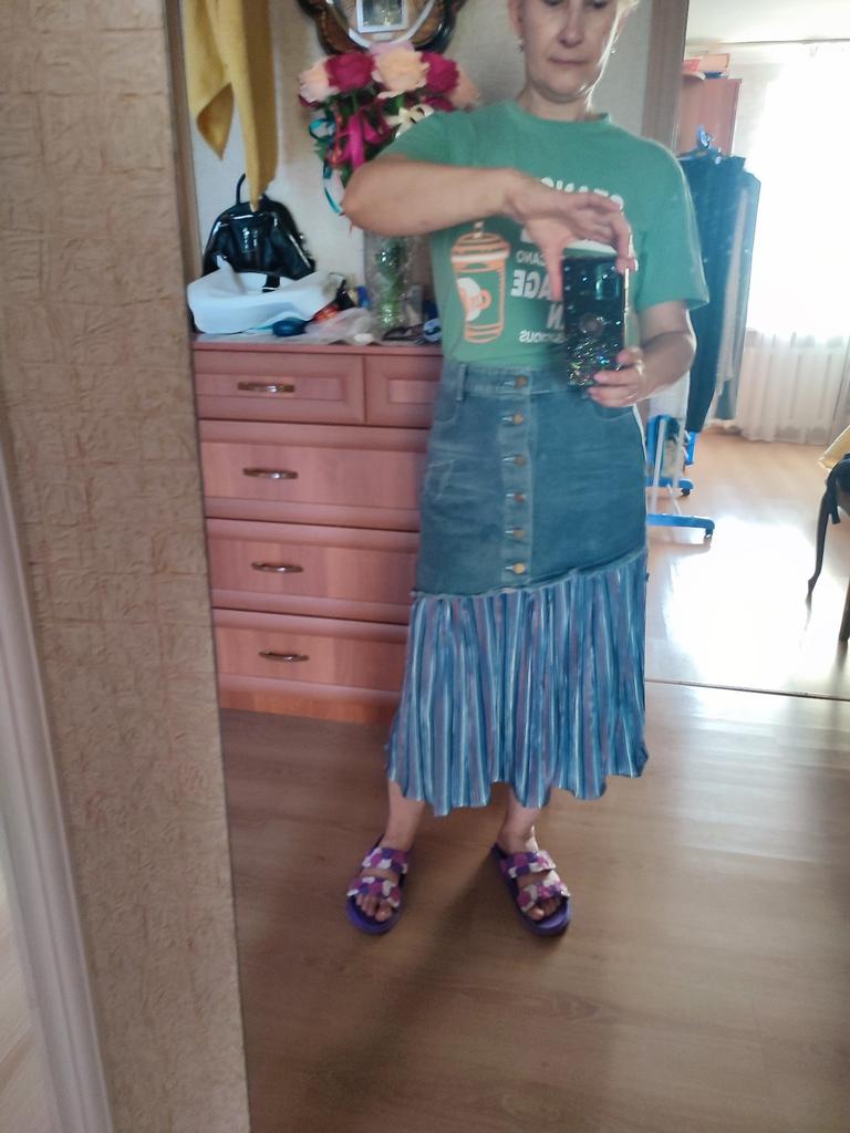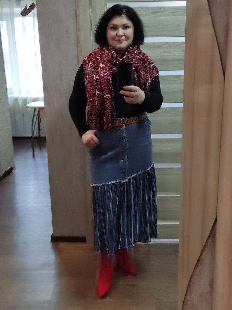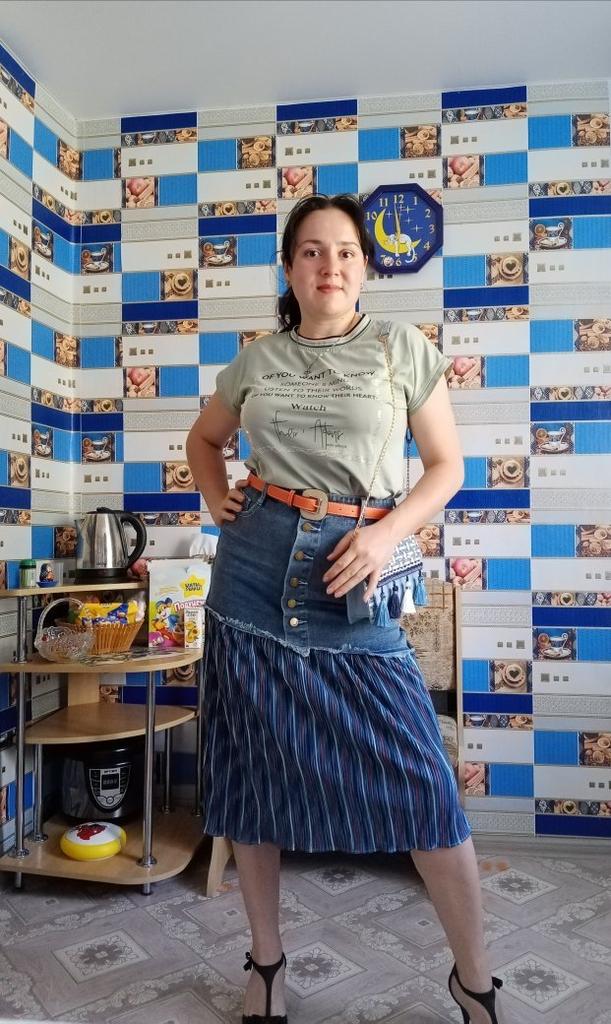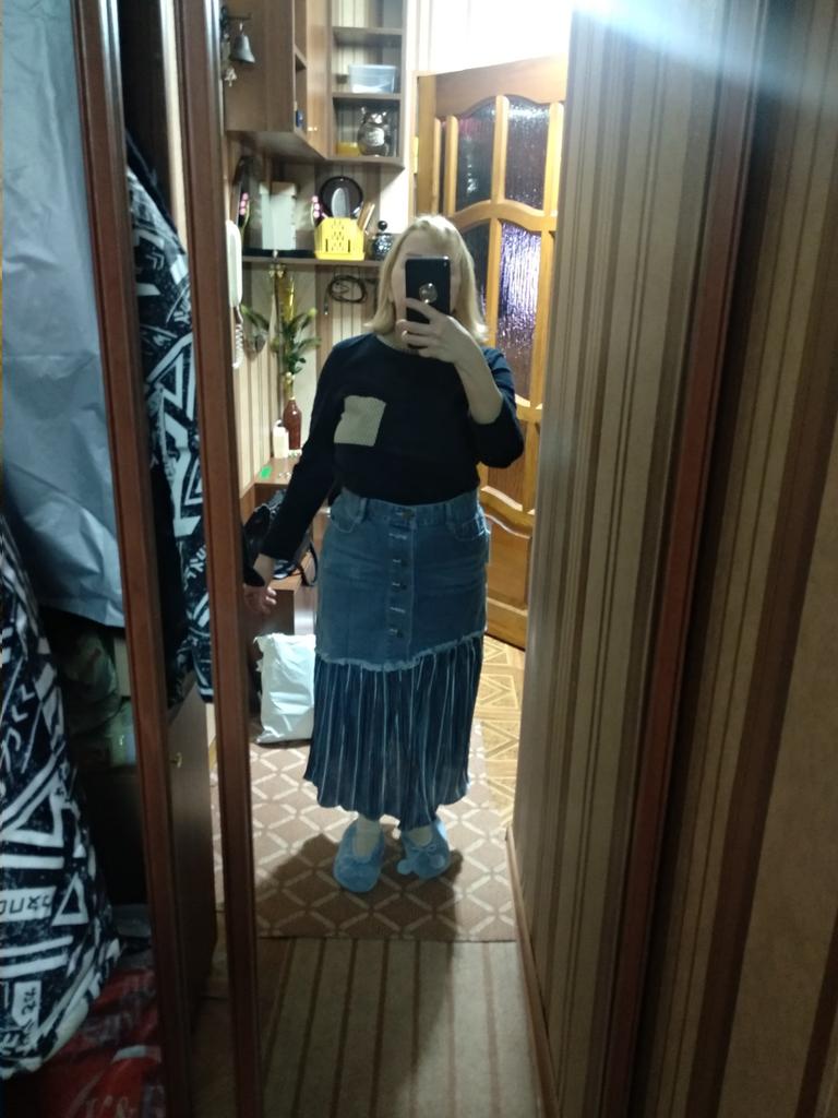The skirt is cool. It's a pity that I didn't like the size. I took M on my 46, I couldnβt fasten it... itβs good that I have a daughter and a daughter-in-law