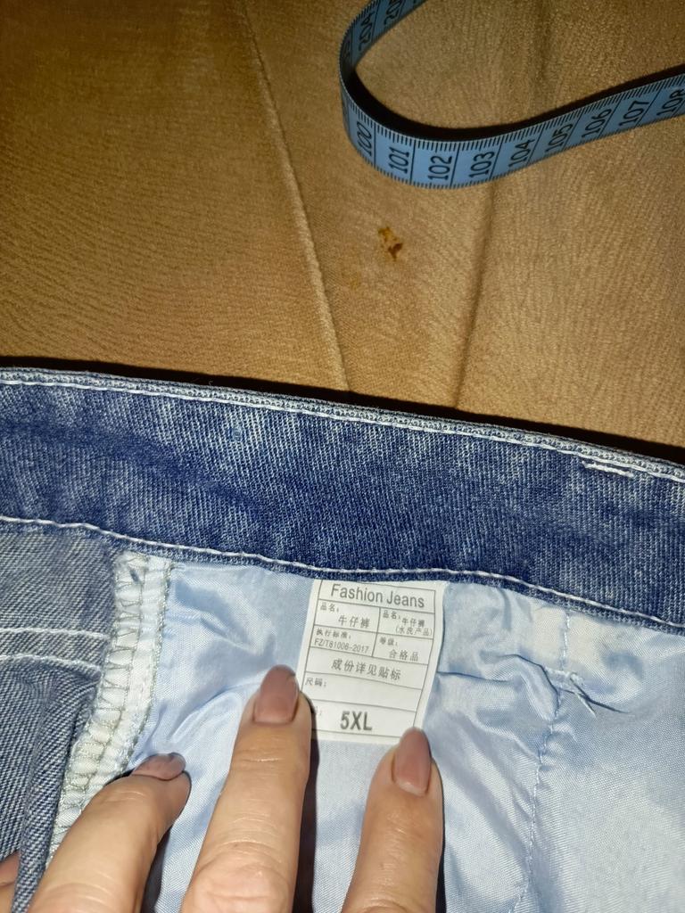 Very faded color of jeans and rotten smell
