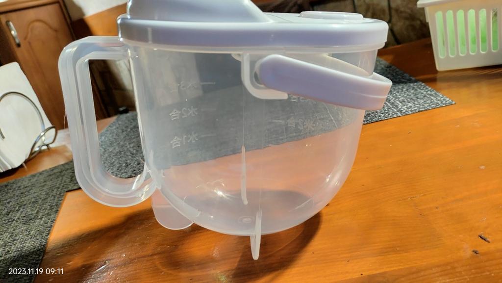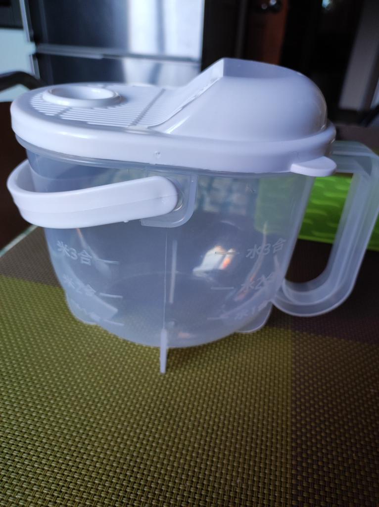 It’s convenient to rinse the grains, but the top handle gets in the way when pouring the grains after rinsing.