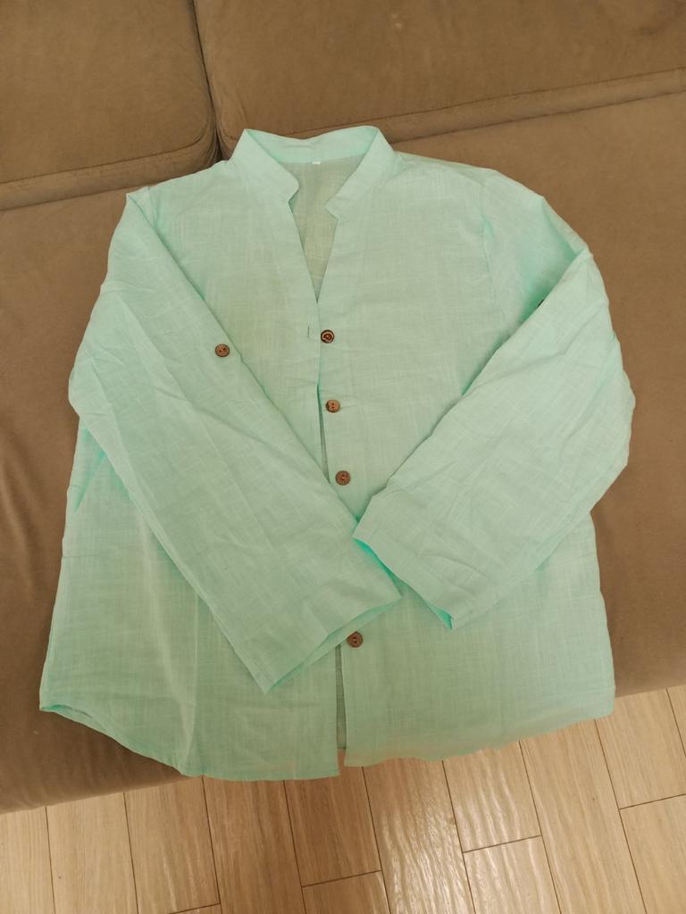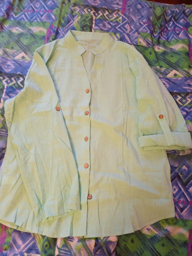 Great shirt. Natural fabric, the quality is very decent at a low price. Before that, I bought a white Zanzea shirt twice as expensive. There quality was terrible. No matter how much I gave chances to that company (4 times I bought different things), everything was thrown away. The same shirt can be worn in the summer over a T-shirt, while the sleeves are rolled up and fixed with buttons, or alone in the office under a vest or jacket.