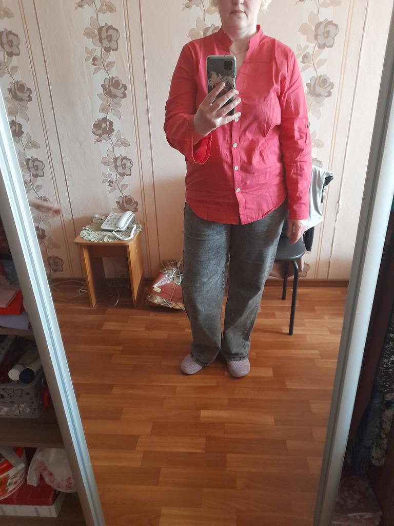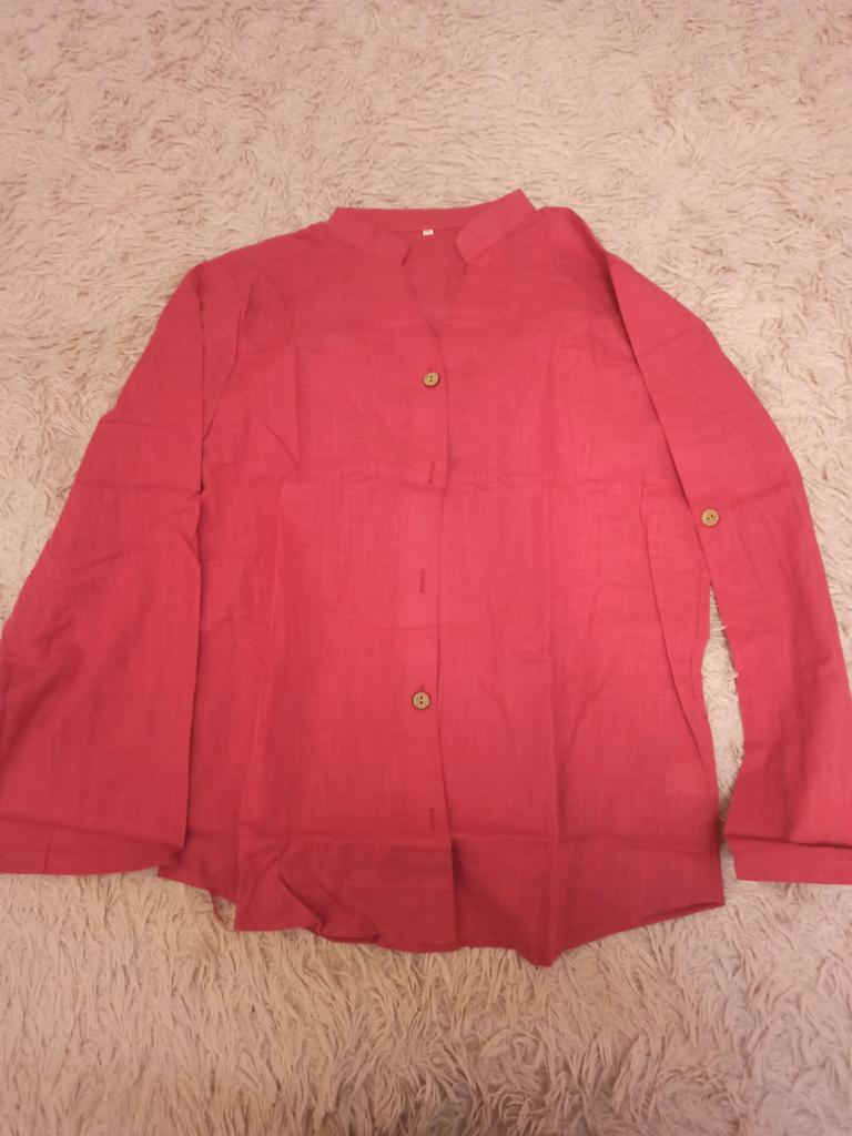 Nice red cotton shirt. According to my parameters 96-86-96 it fits loosely, but thatβs what I expected. Simply wonderful for summer!