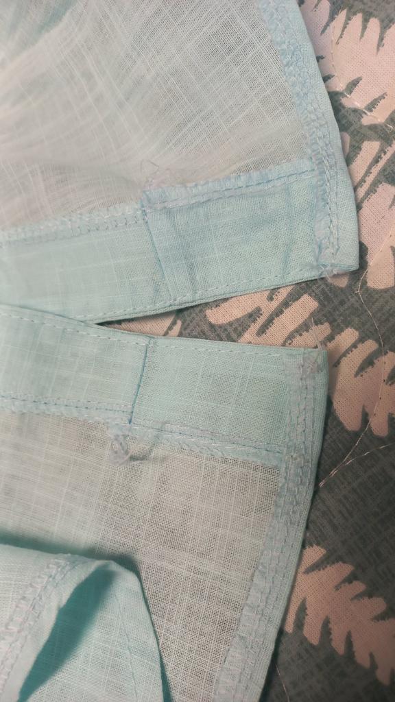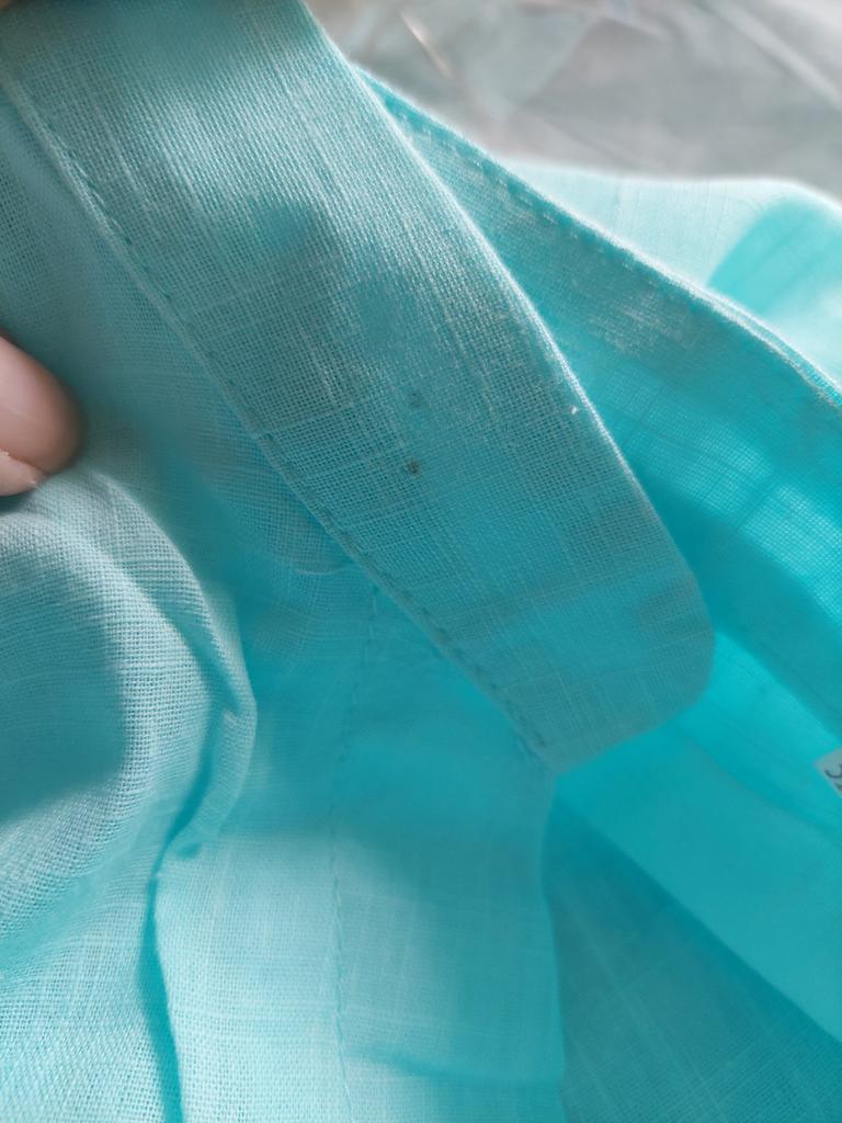 I'm not happy. The color is not blue, but green, the fabric is hard, does not lie like in the photo. The size is huge. Throwing away money