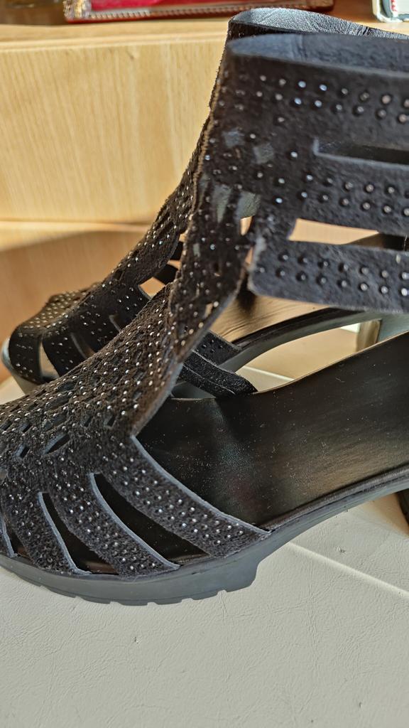 The sandals are beautiful, but the size is not clear, it seems to be on the leg, and when you walk, your fingers really stick out a little.