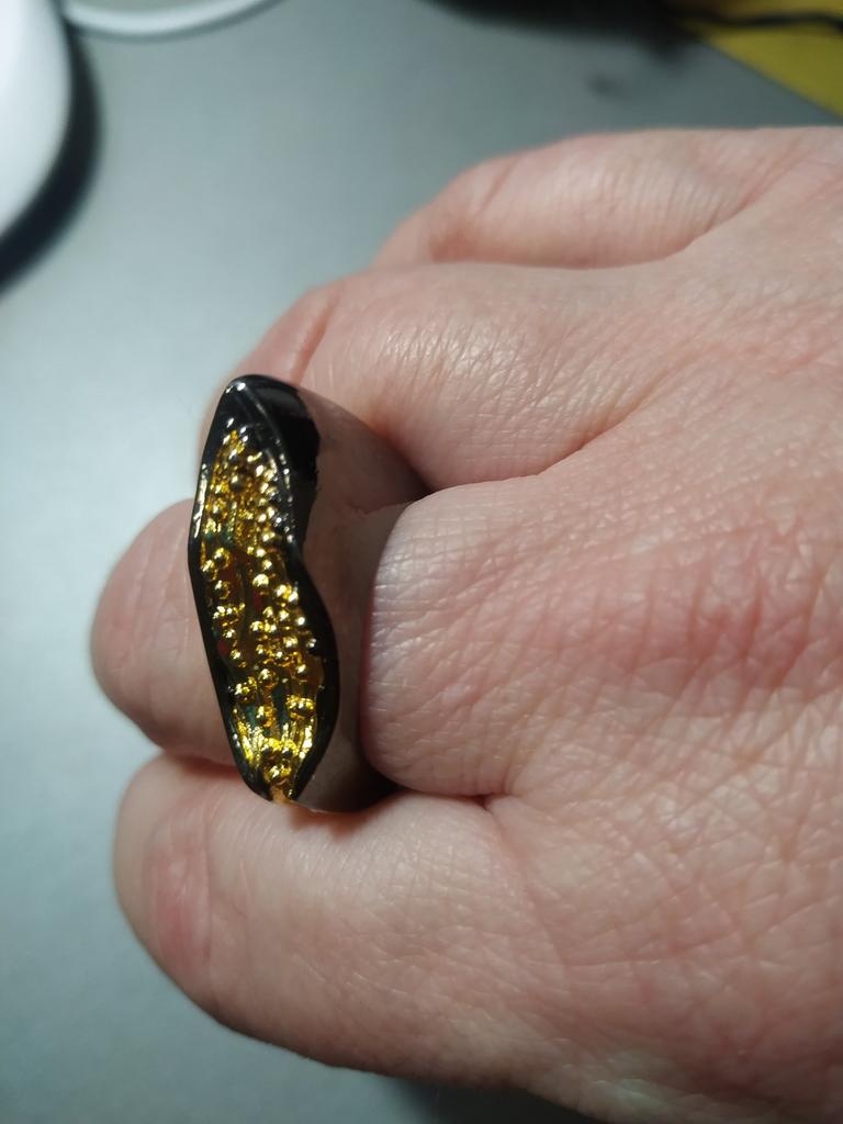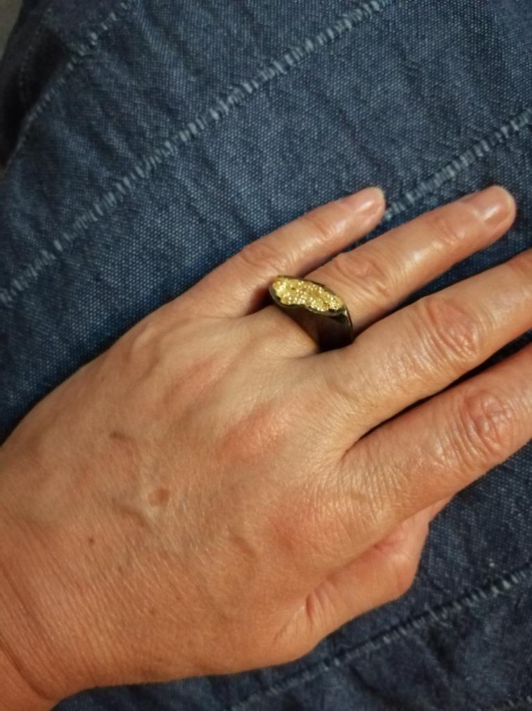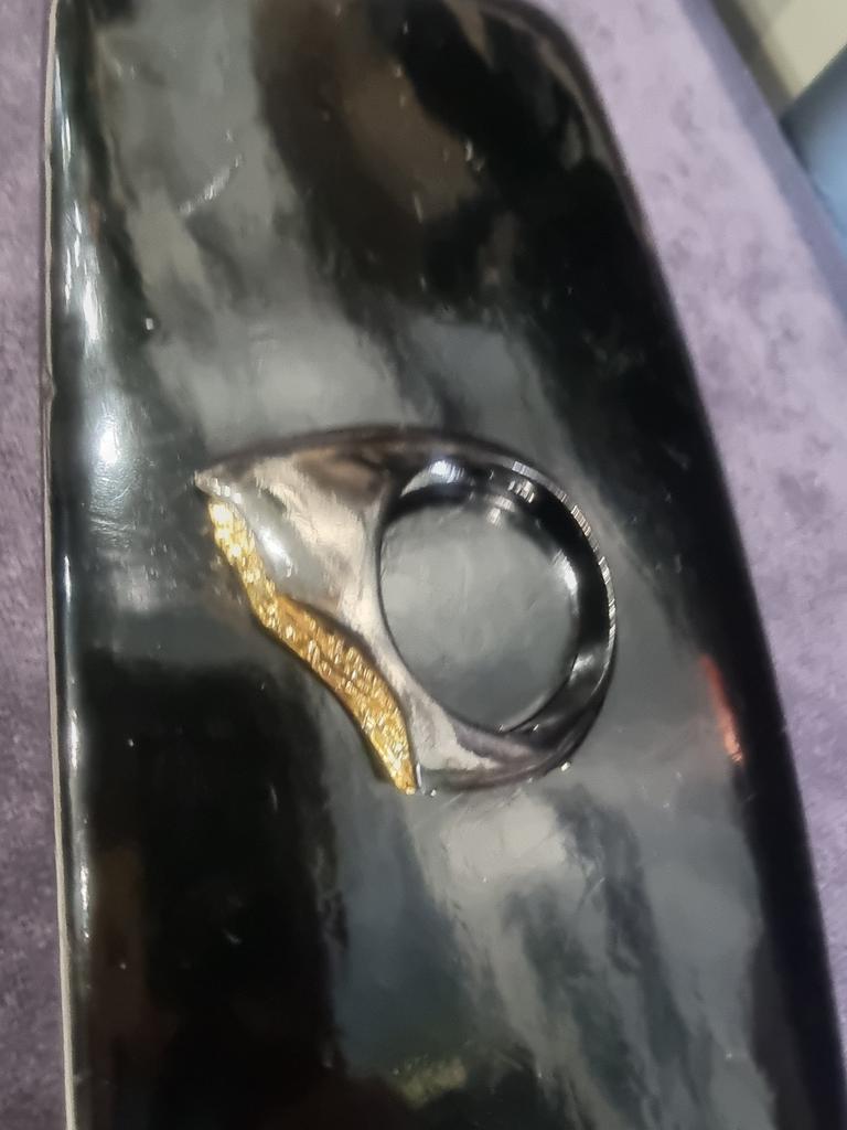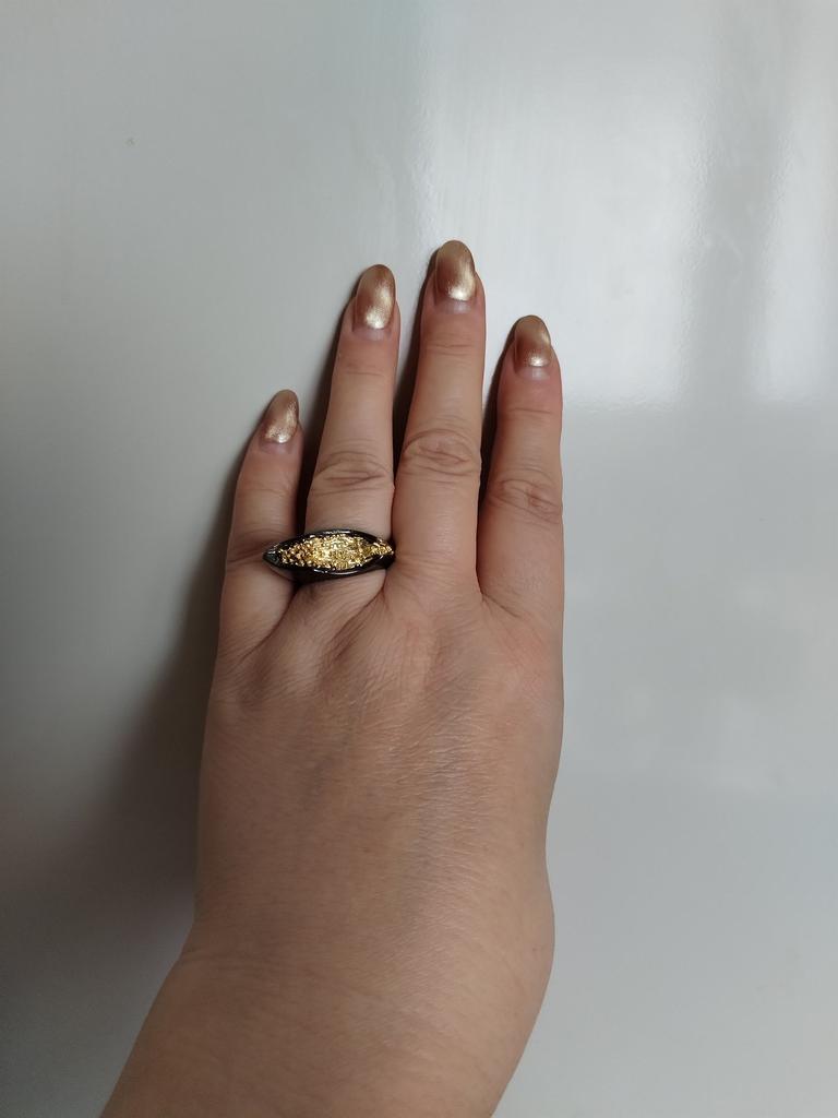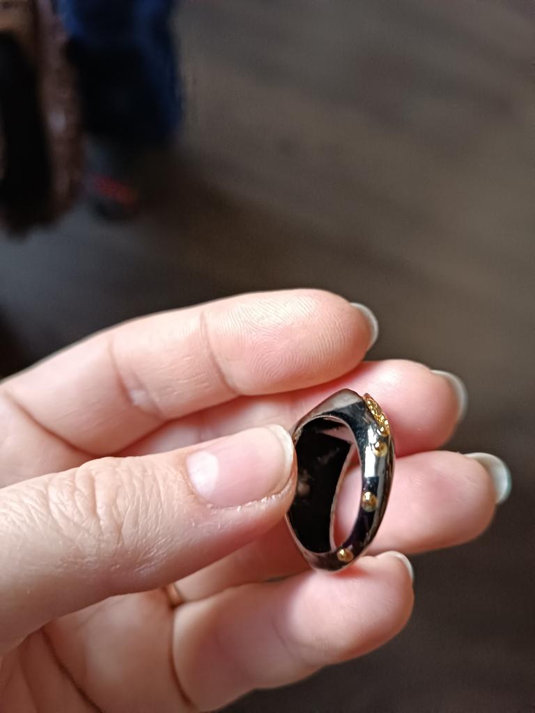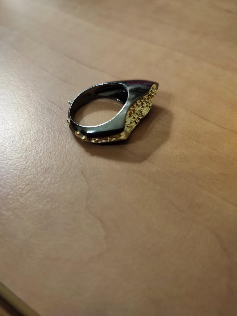 Oh, the ring is beautiful. Diagonally, like it flows (lava) 🤭. Black coating. True to size. I recommend. Thank you very much for your work 🌹🌹🌹🌹🌹
