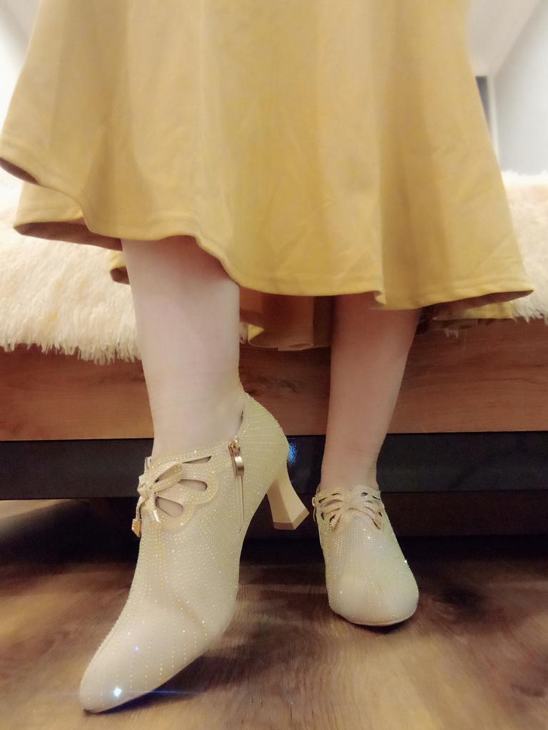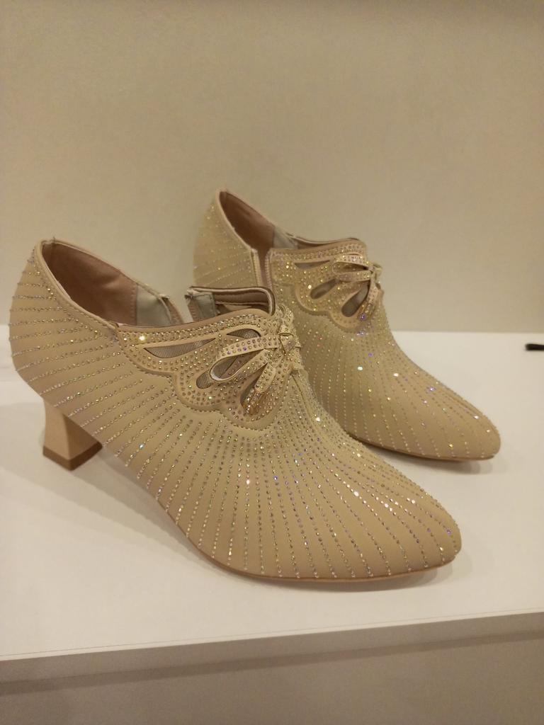 Beautiful, elegant shoes. They sparkle with gold.