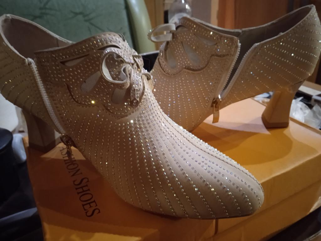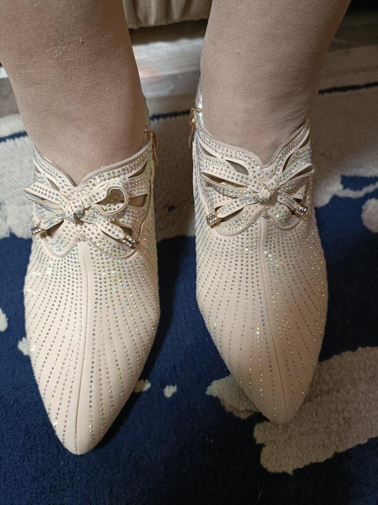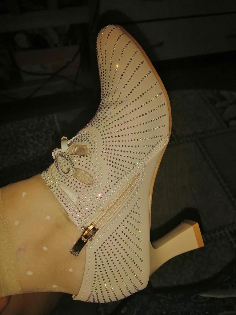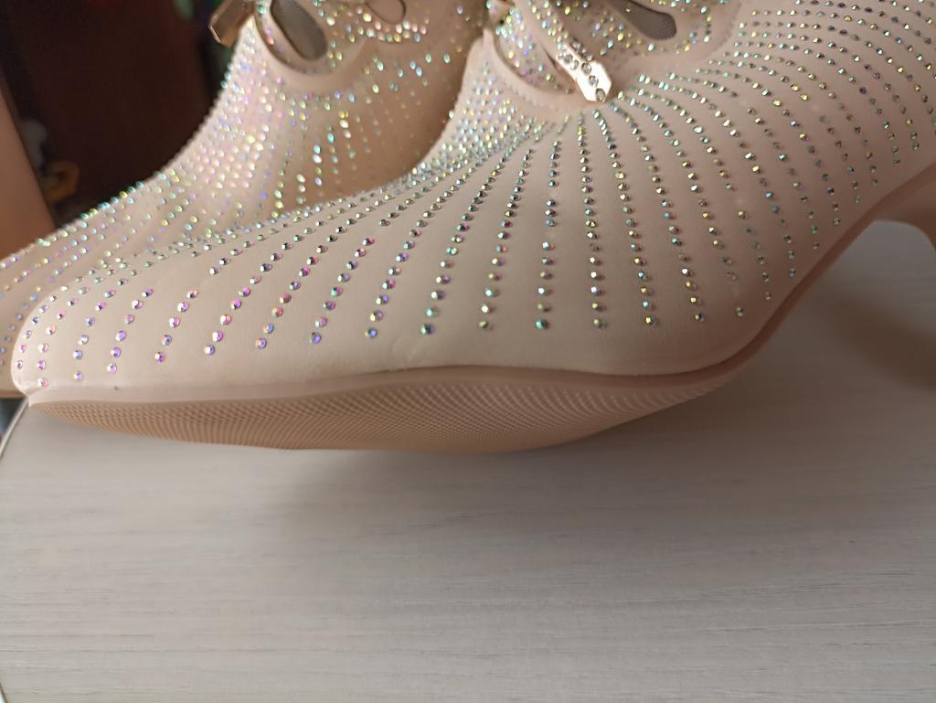 The shoes are so beautiful with rhinestones, the last is very comfortable, I’m very happy with the shoes.