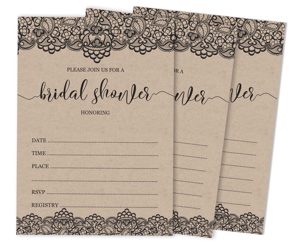 Inkdotpot 30A Victorian Black Lace KraftA Fill-In Style Bridal Shower Invitations Wedding Blank