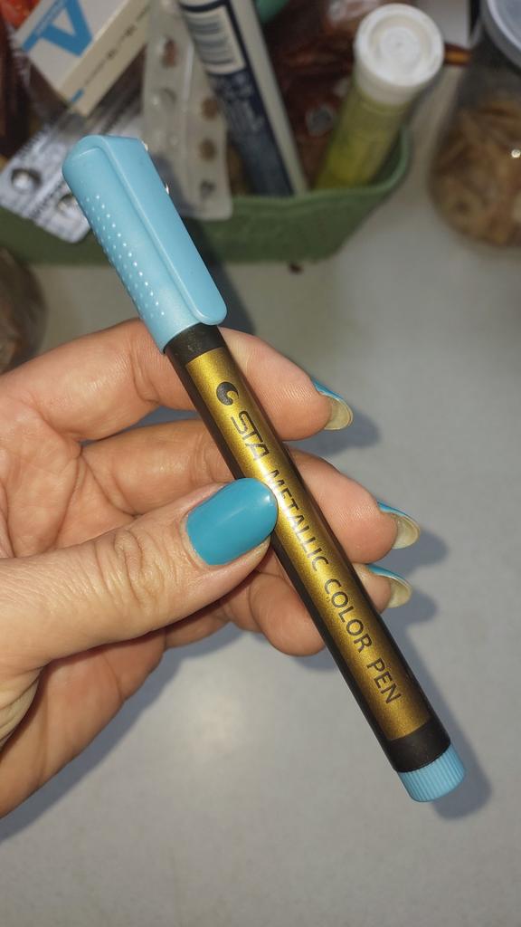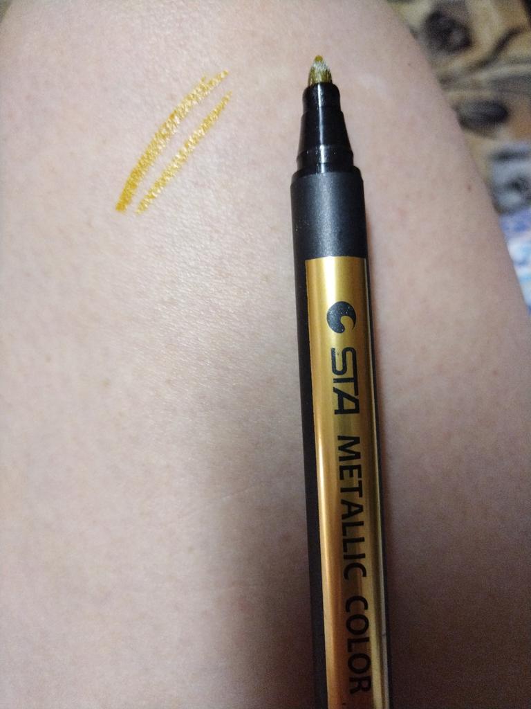 Wouldn't say it's thin and, especially, metallic: just a regular felt-tip pen.