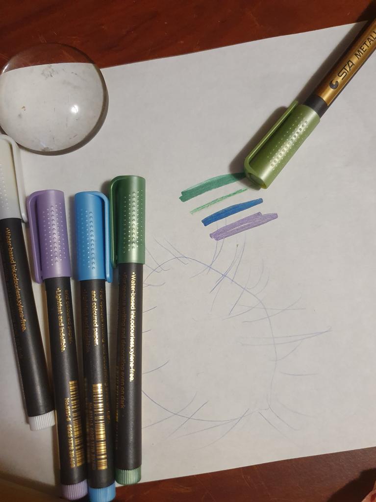 Markers as described. Writes well.