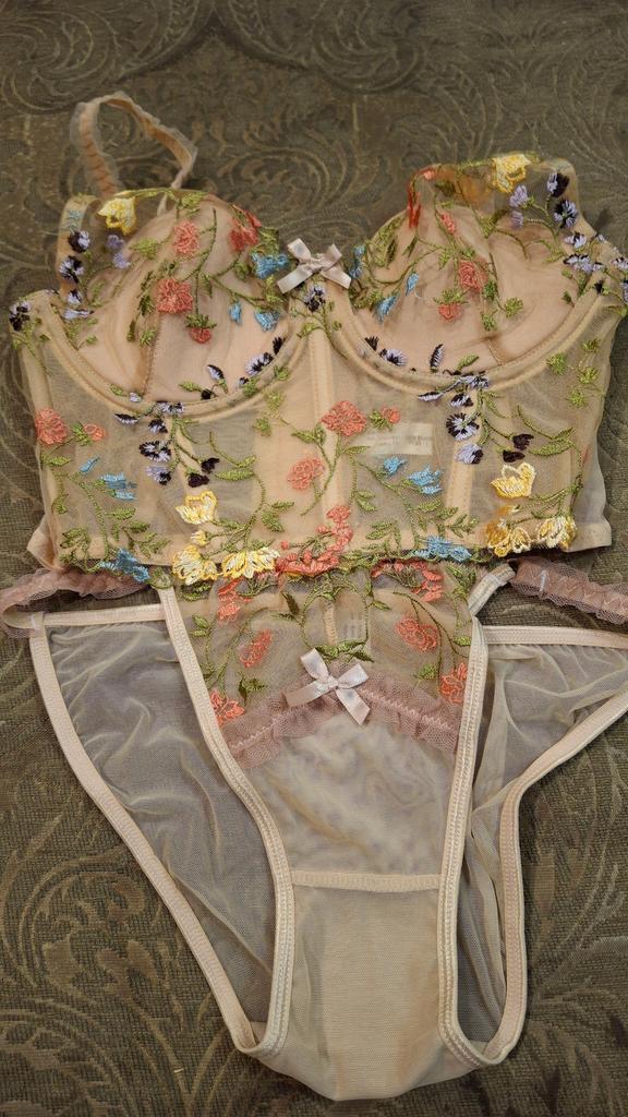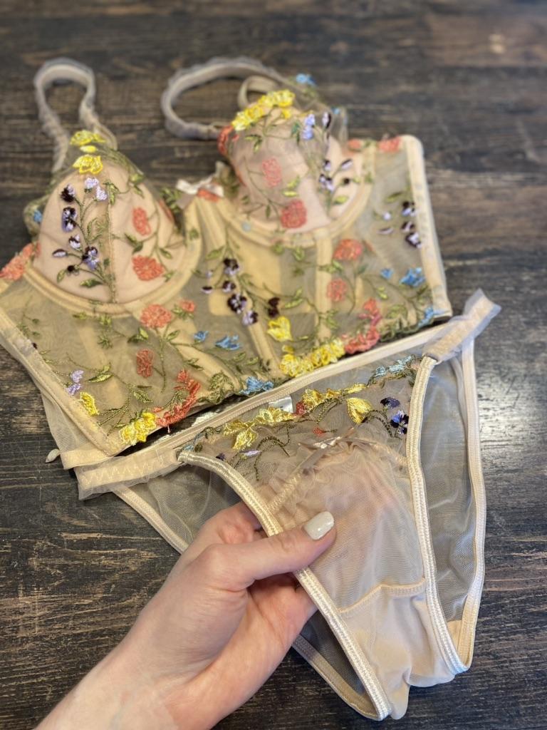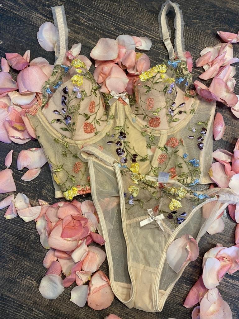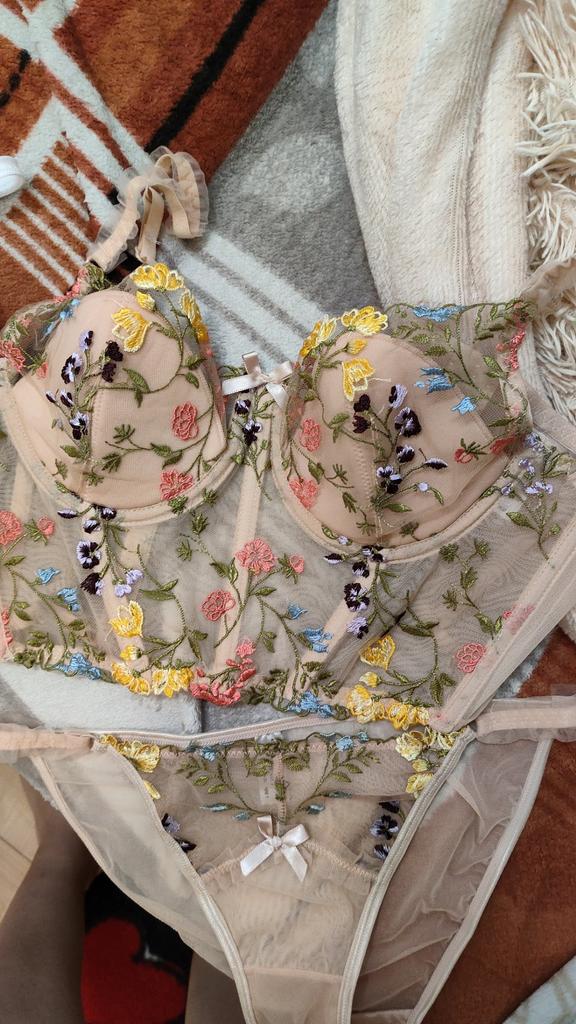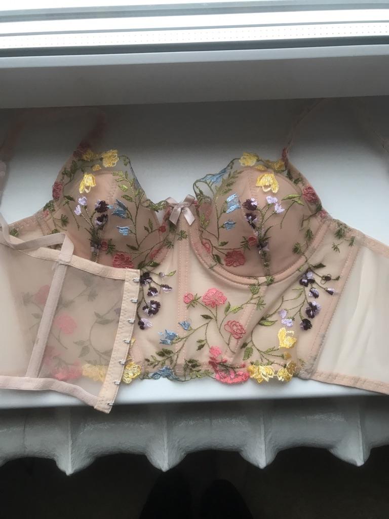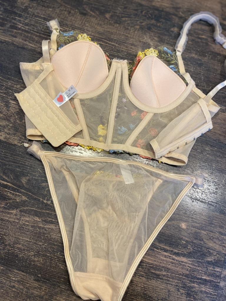 Underwear set ☺️ I bought this set for this gorgeous corset. I got size S and it fits me perfectly. The straps are adjustable, and the back corset has 3 "steps" let's call them that. I will wear this corset with colorful maxi or midi skirts 💚💛💜 Ig: blejanalexandra ✨