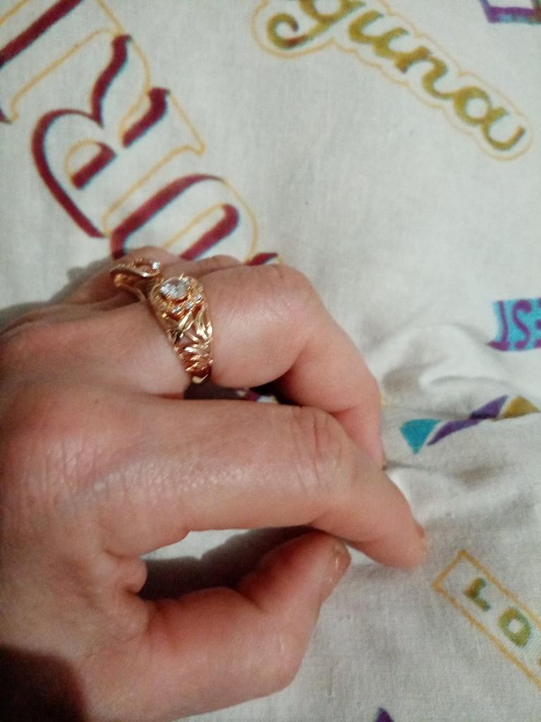 The ring is simply charming, indistinguishable from gold. Not big, not small, medium-sized, it looks neat on the hand. Thank you all!