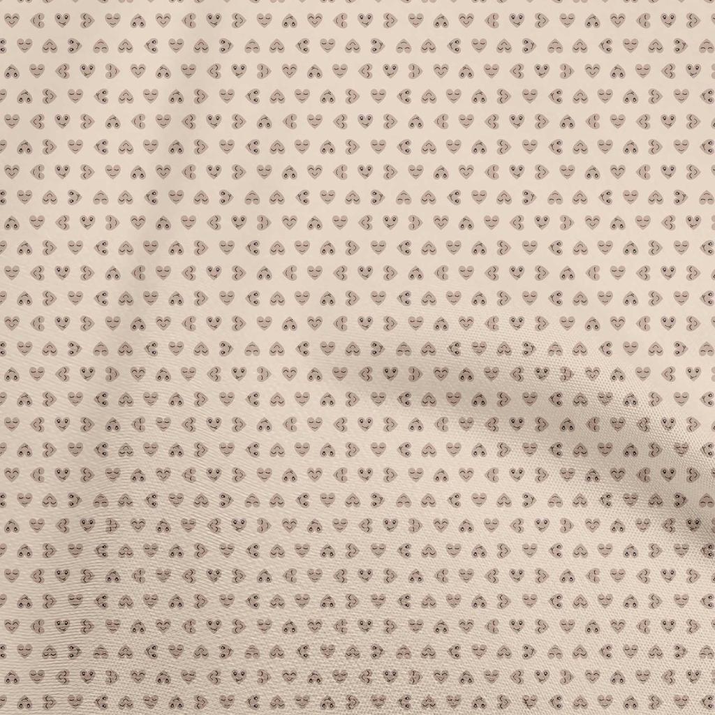 oneOone Cotton Flex Light Beige Fabric Hearts Print Dress Material Fabric Print Fabric By The Yard 40 Inch