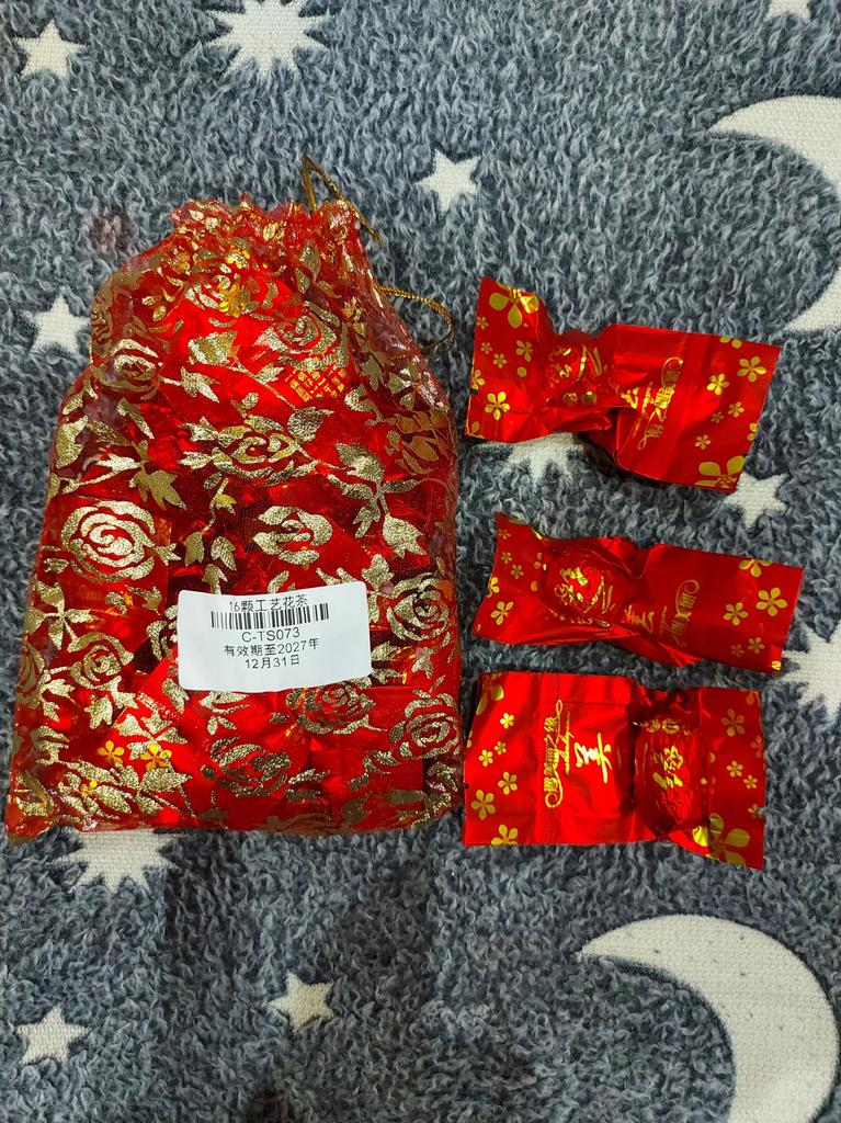 It's very beautiful, in a little bag, I ordered it as a gift so I hope it's also tasty
